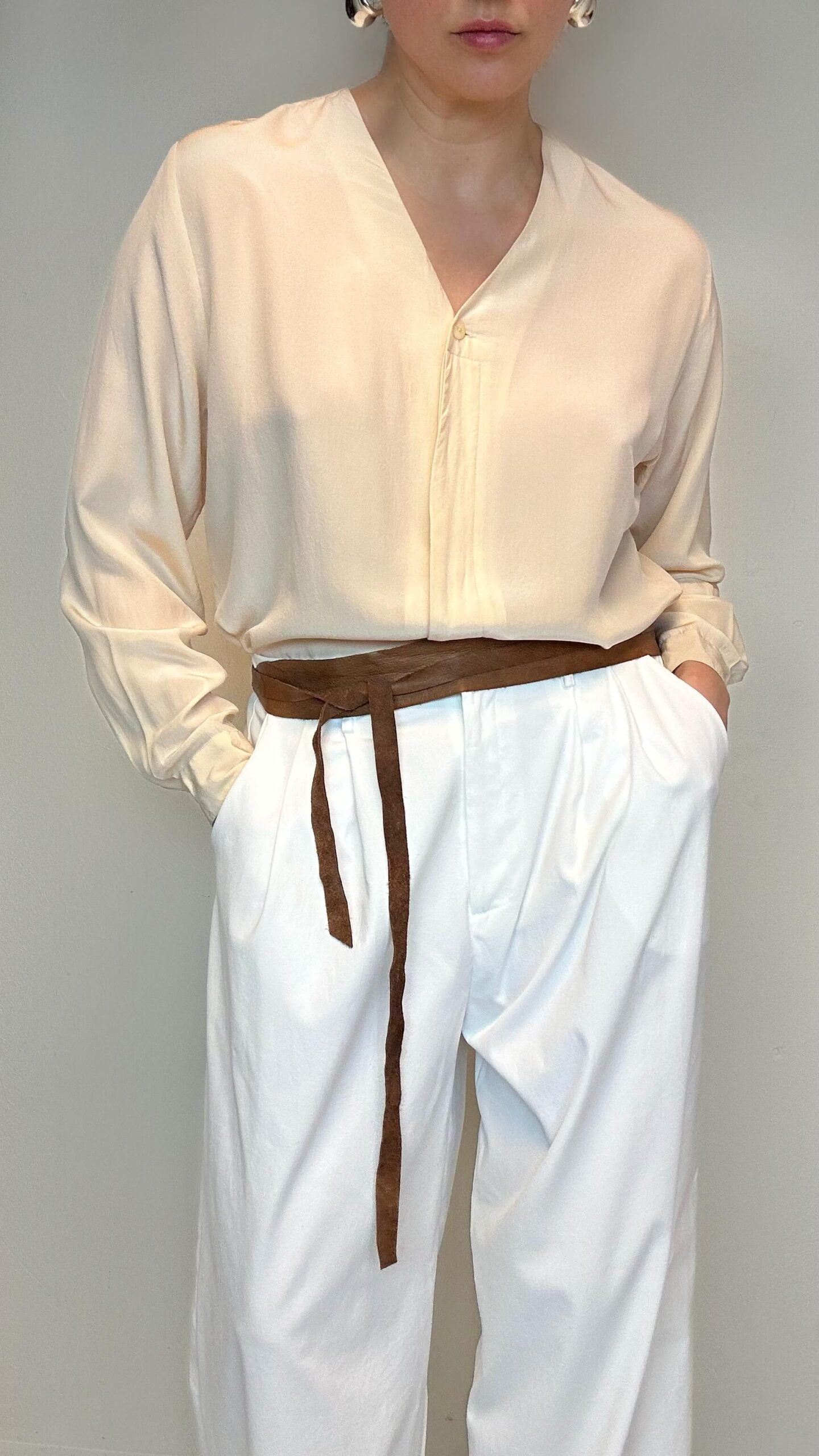 Silk light peach classic blouse1 in stock 118$ Silk light peach classic blouse Material: 100% Silk Fit: L/XL 108cm Chest 73cm Sleeve (from the neckline) 68cm Length 1 in stock Silk light peach classic blouse quantity Add to cart Categories: All, Blouses, Subscribers