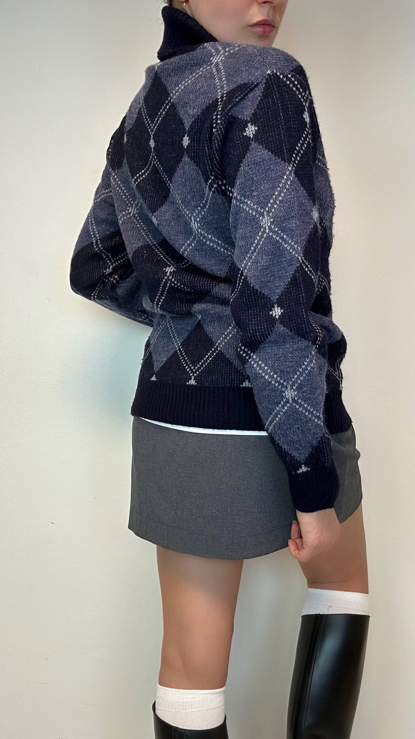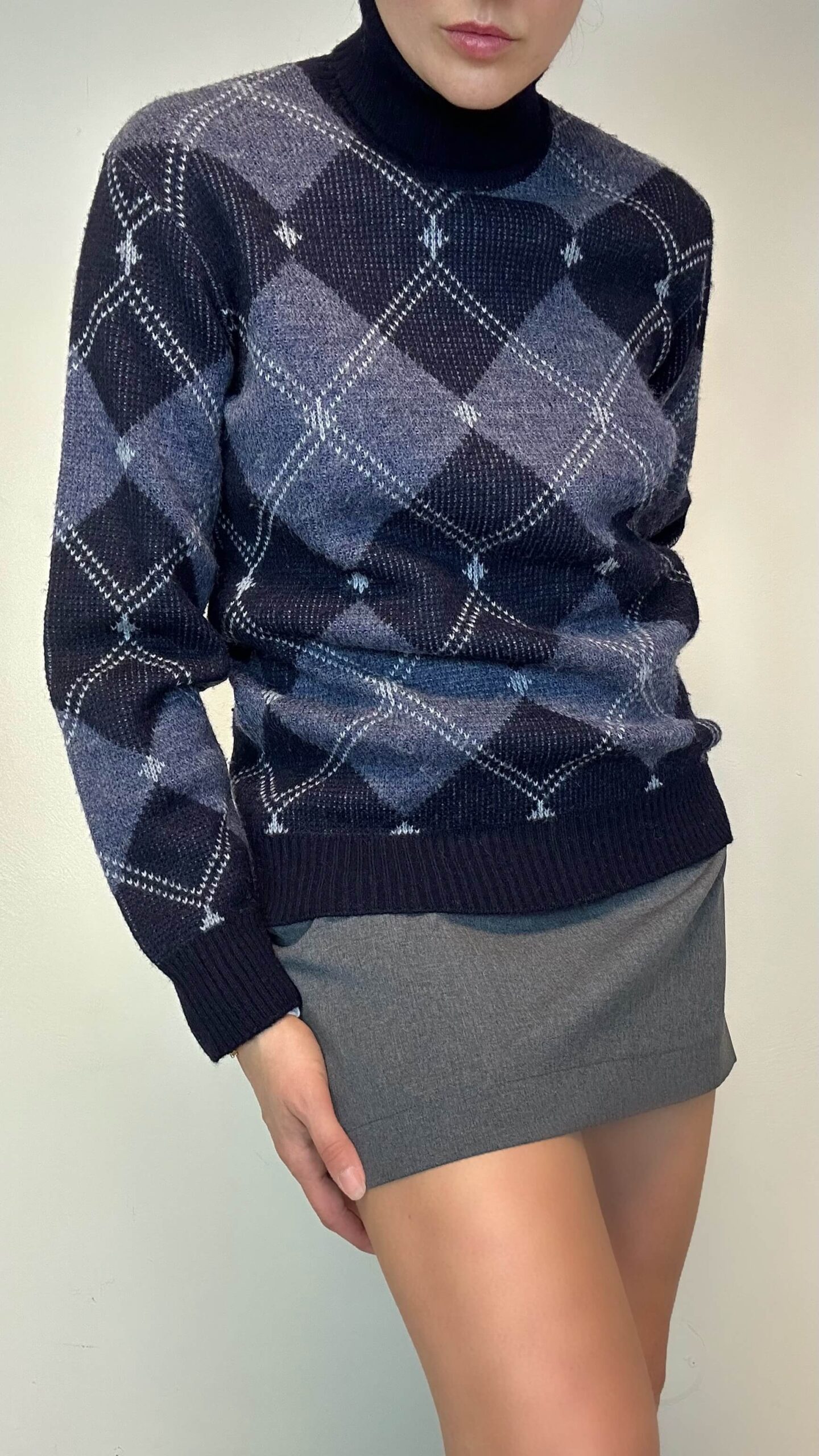 Argyle woolen high neck sweater