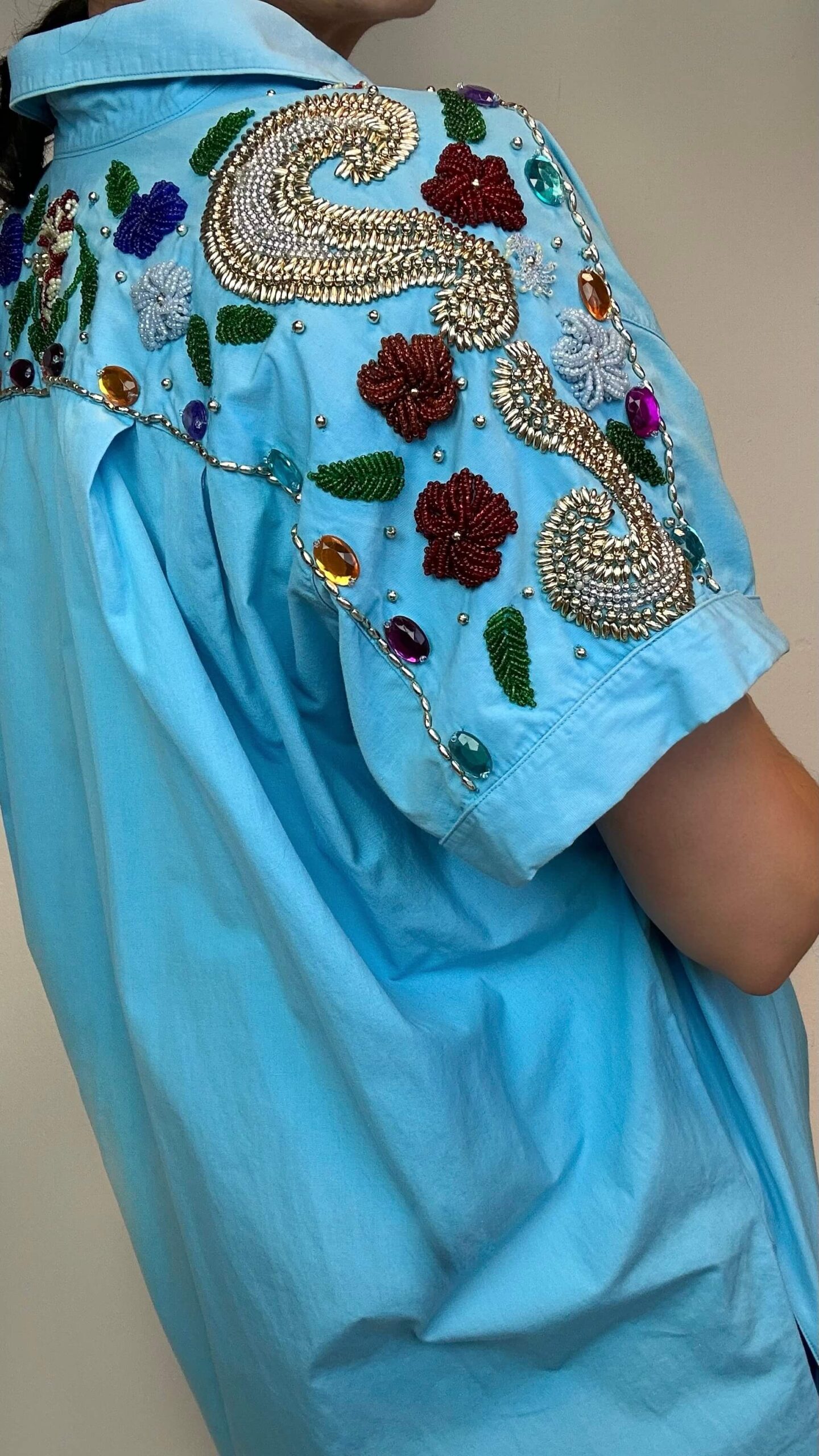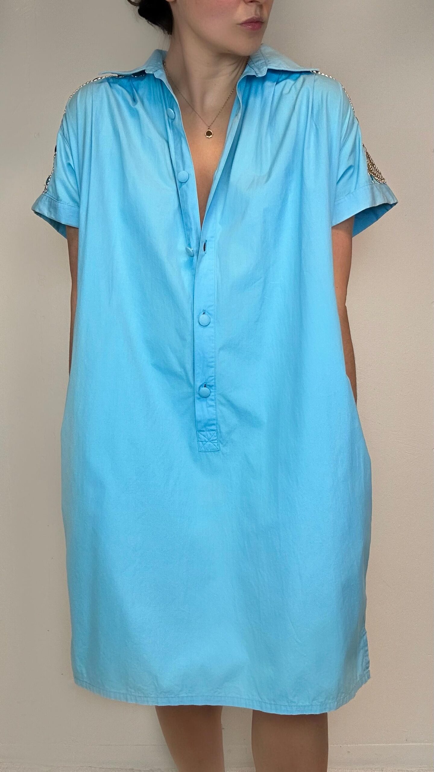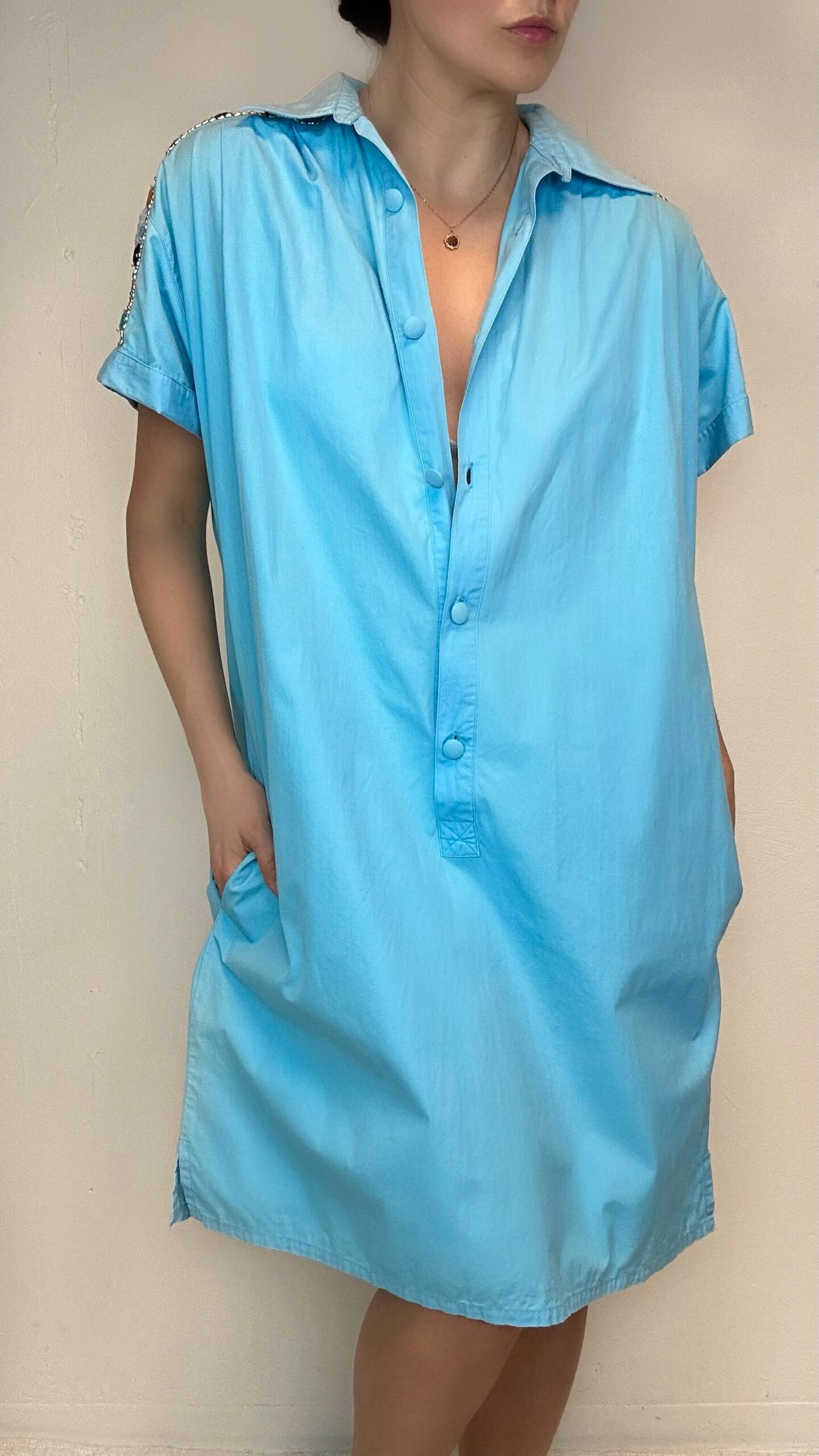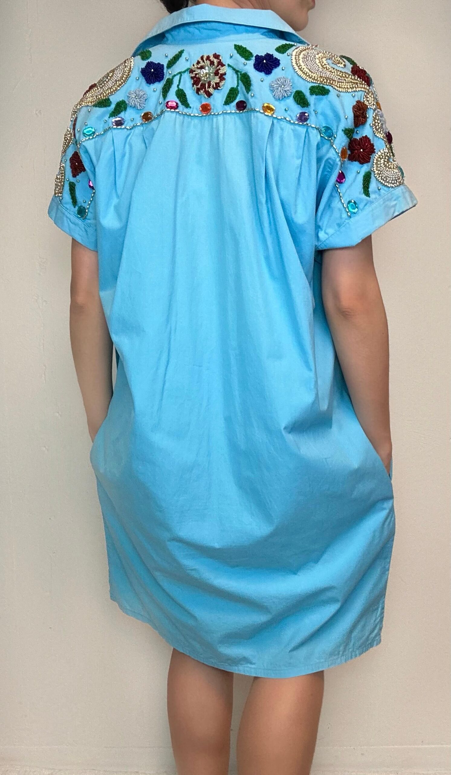 Blue heavy beaded baggy dress1 in stock 147$ Blue heavy beaded baggy dress. Material: 100% Cotton Fit:XL/XXL 128cm Chest 100cm Length 1 in stock Blue heavy beaded baggy dress quantity Add to cart Categories: All, Dresses