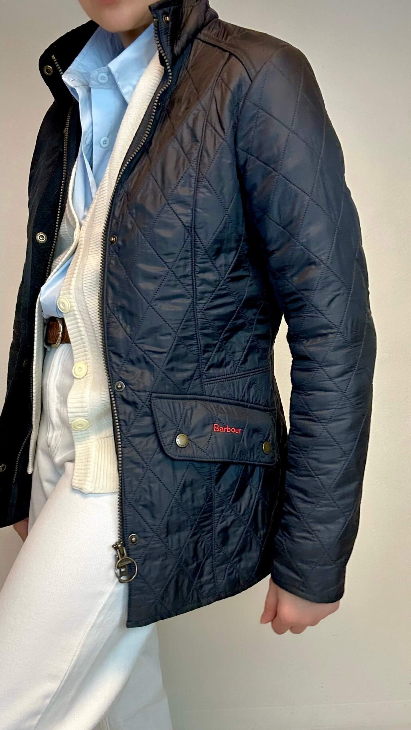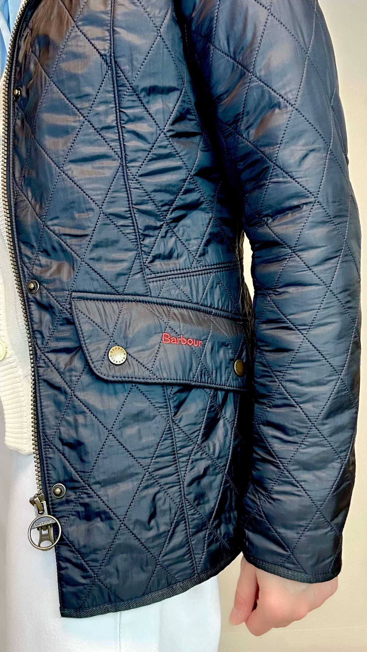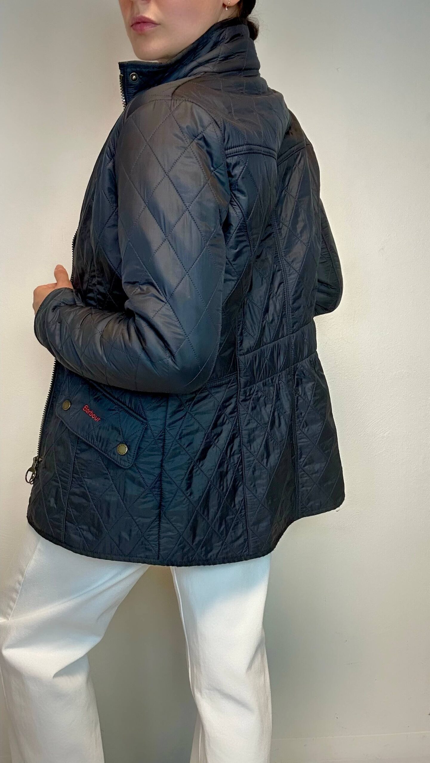 BARBOUR dark navy blue quilted winter jacket.
