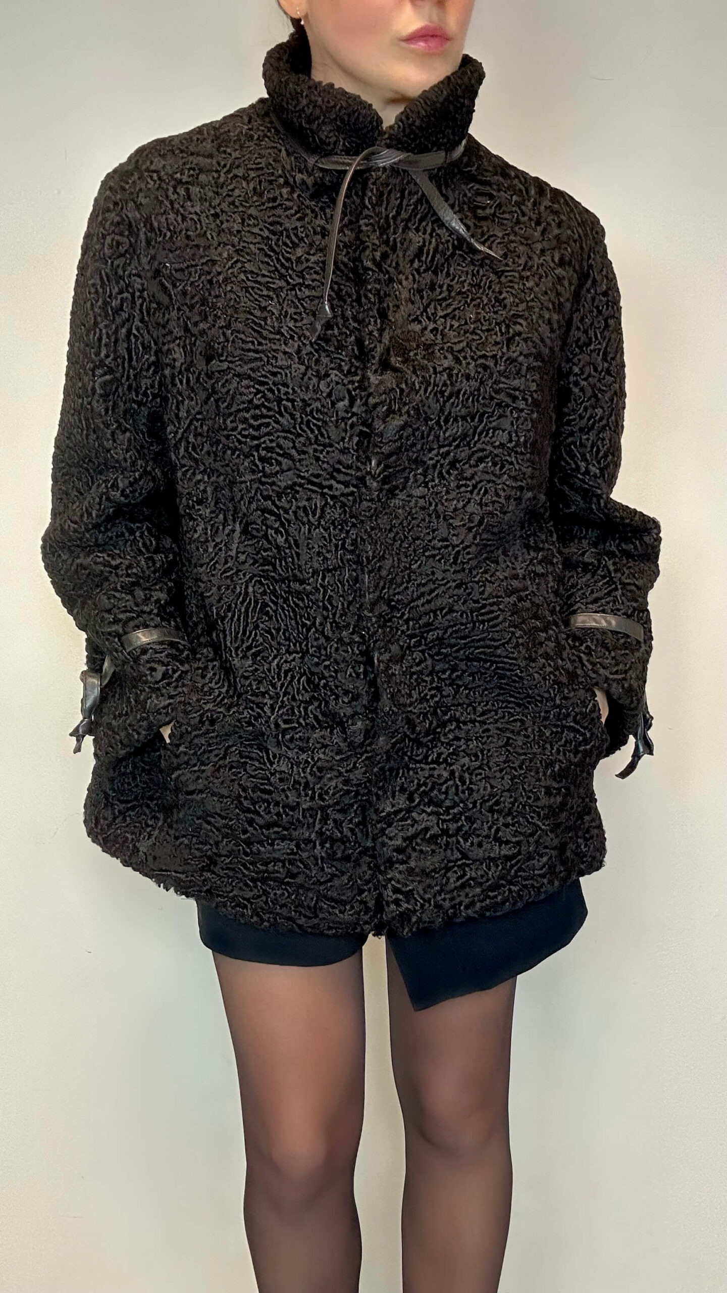 Classic black persian fur jacket with a standing collar