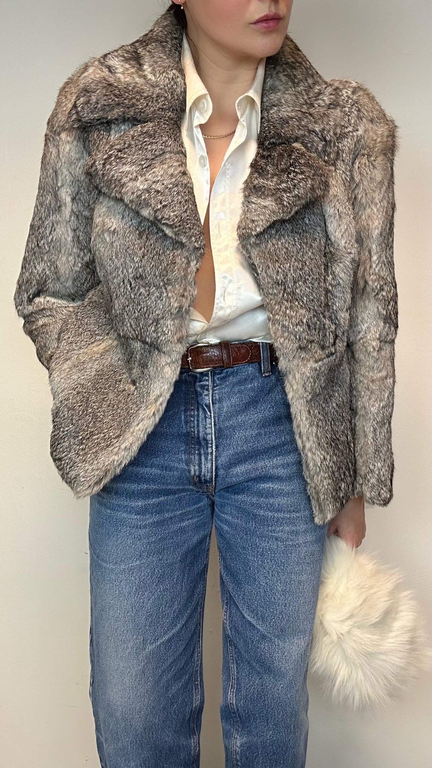 Classic grey genuine fur jacket1 in stock 459$ Classic grey genuine fur jacket Material: Rabbit fur Fit: XS/S 39cm Shoulder to shoulder 92cm Chest 60cm Sleeve (from the shoulder) 58cm Length 1 in stock Classic grey genuine fur jacket quantity Add to cart Categories: All, Fur