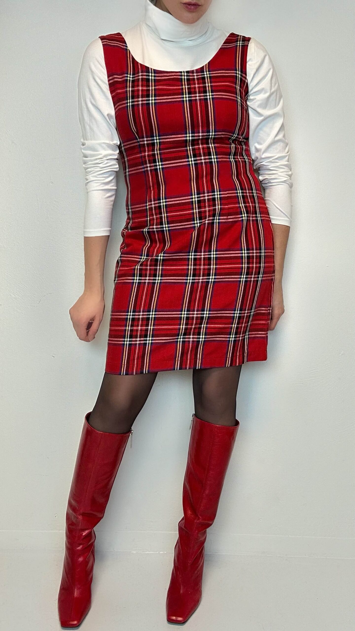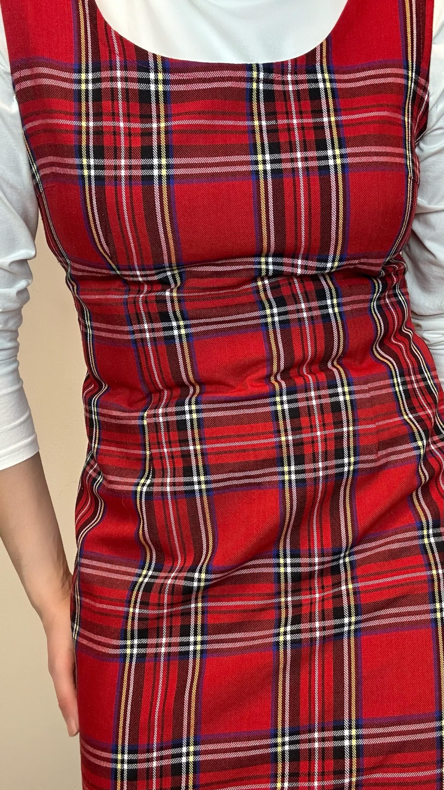 Classic red tartan sleeveless dress1 in stock 101$ Classic red tartan sleeveless dress Material: Wool/Polyester mix Fit: M 92cm Chest 85cm Waist 103cm Hips 87cm Length 1 in stock Classic red tartan sleeveless dress quantity Add to cart Category: Subscribers