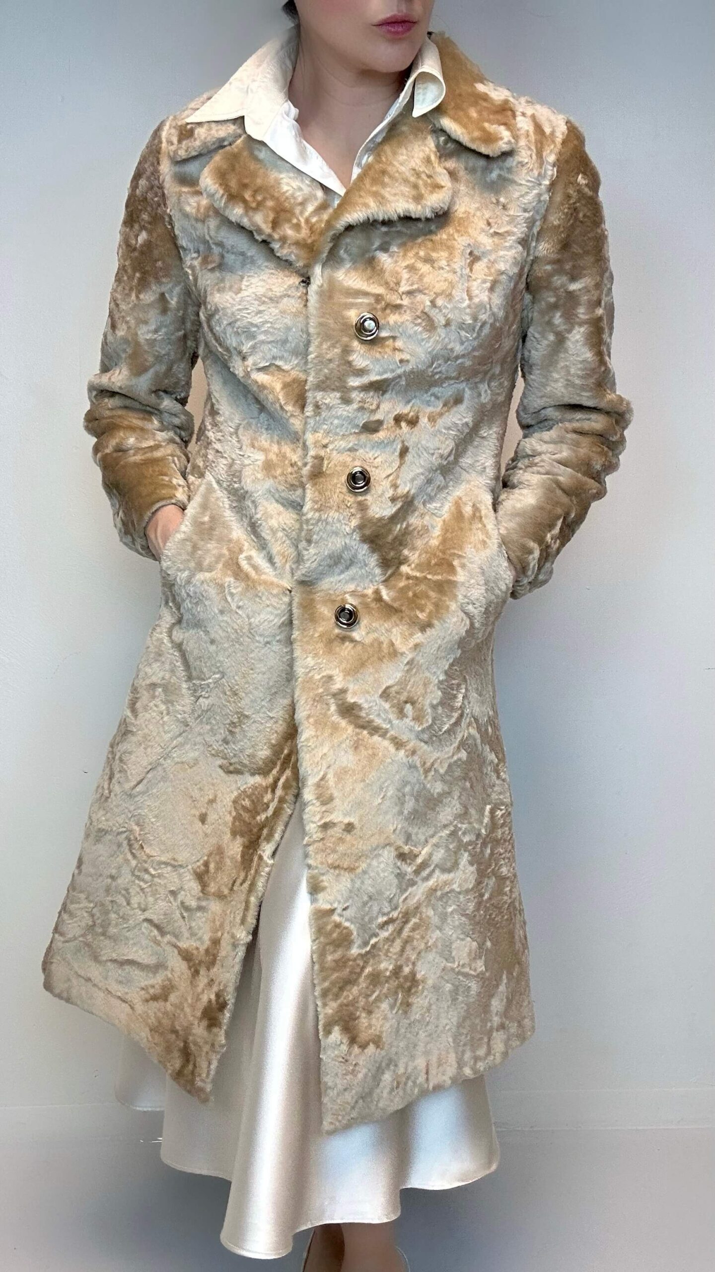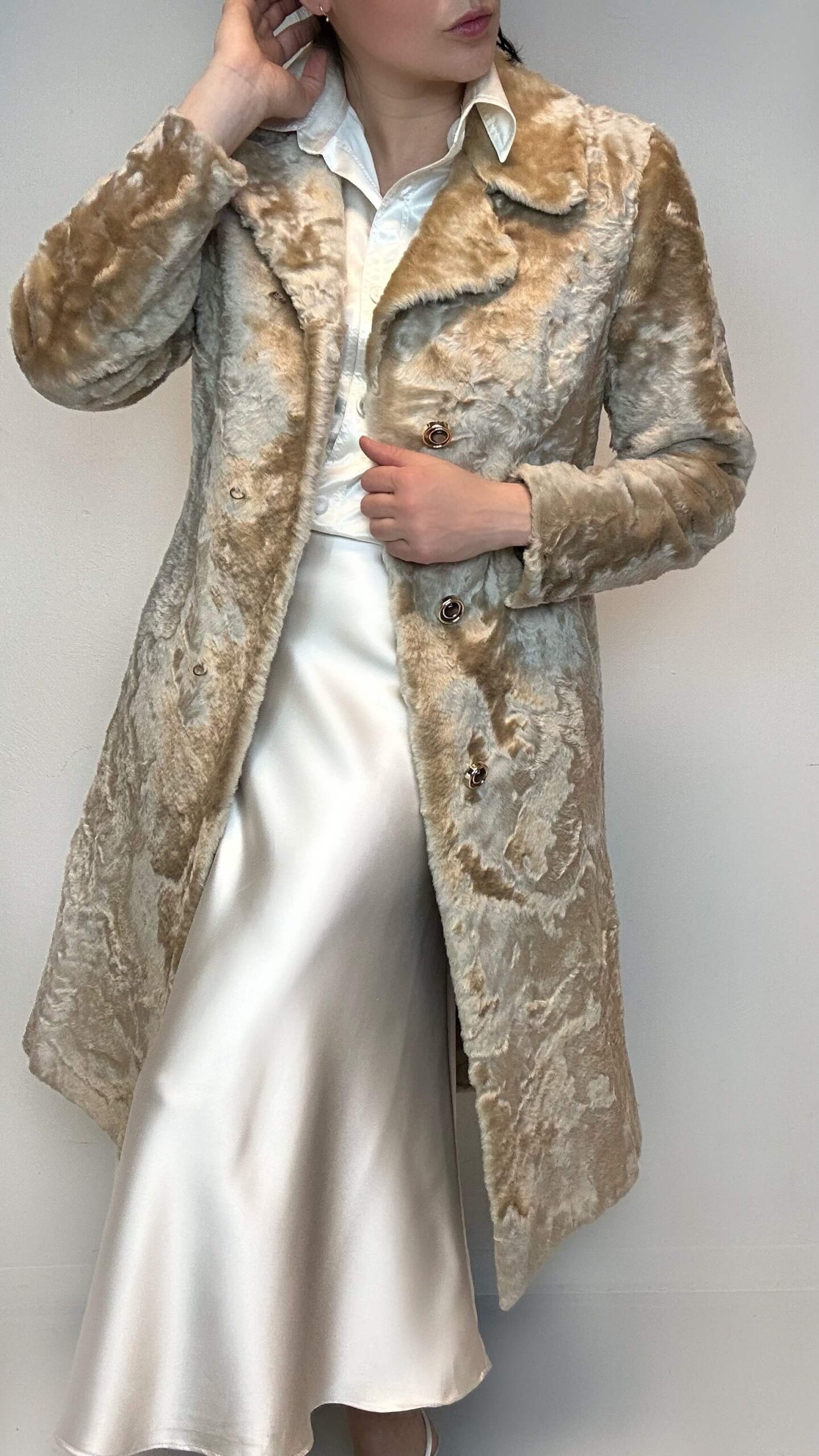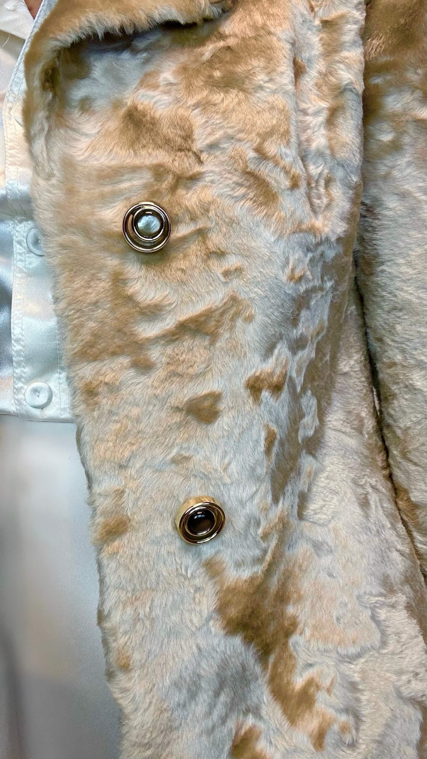 Creamy buttermilk genuine winter fur coat with almond buttons