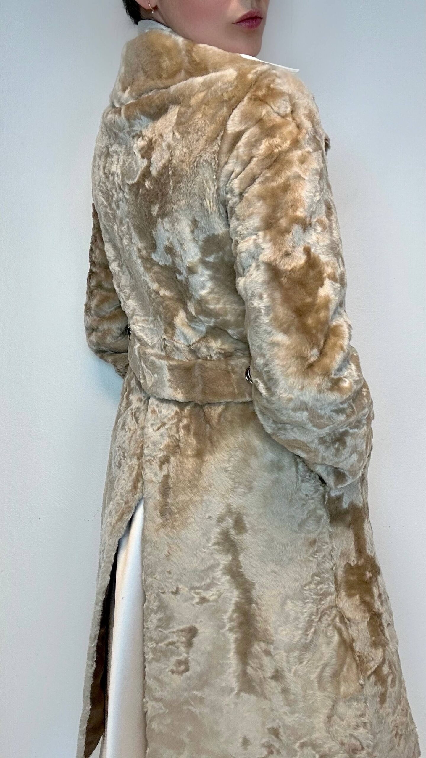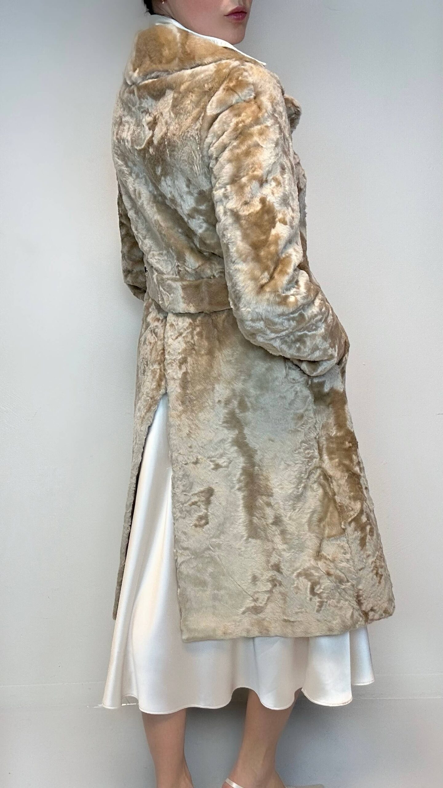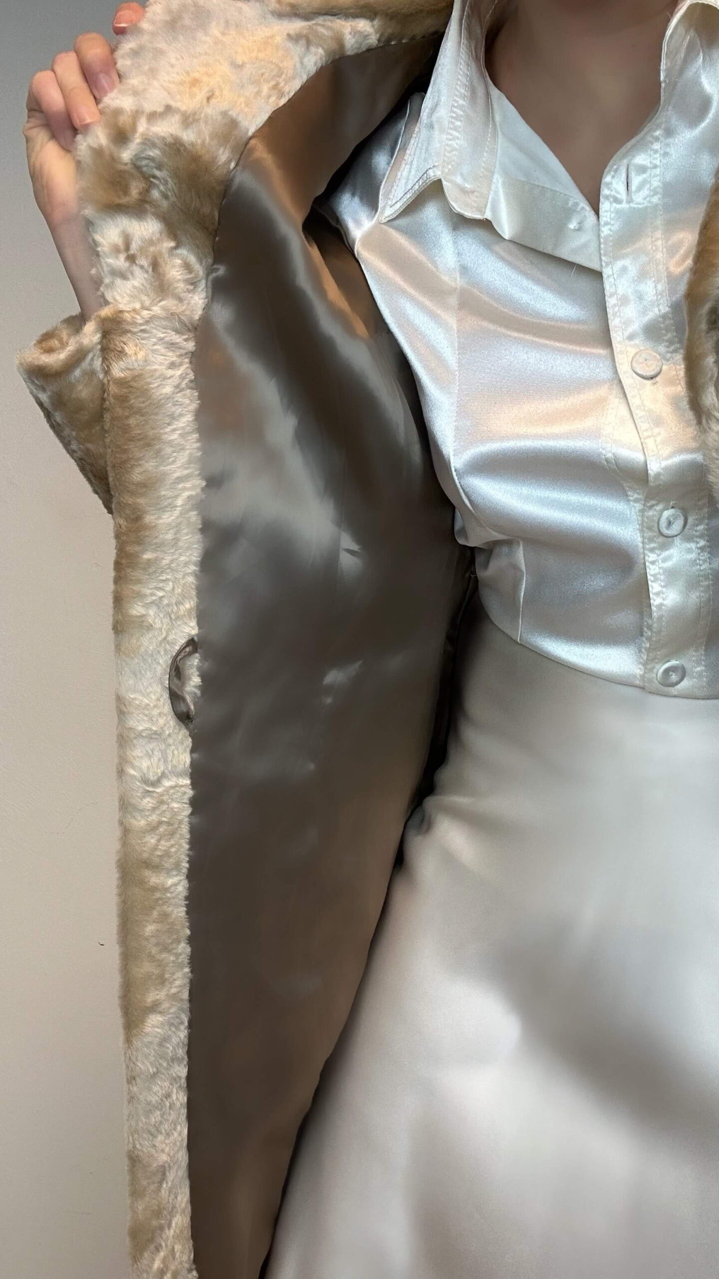 Creamy buttermilk genuine winter fur coat with almond buttons