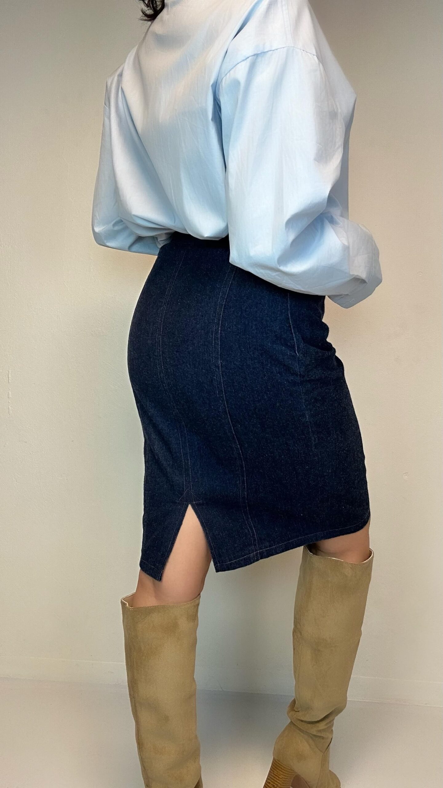 Denim classic pencil skirt1 in stock 80$ Denim classic pencil skirt. Material: 100% Cotton Fit: XS/S 74cm Waist 96cm Hips 59cm Length 1 in stock Denim classic pencil skirt quantity Add to cart Categories: All, Bottoms