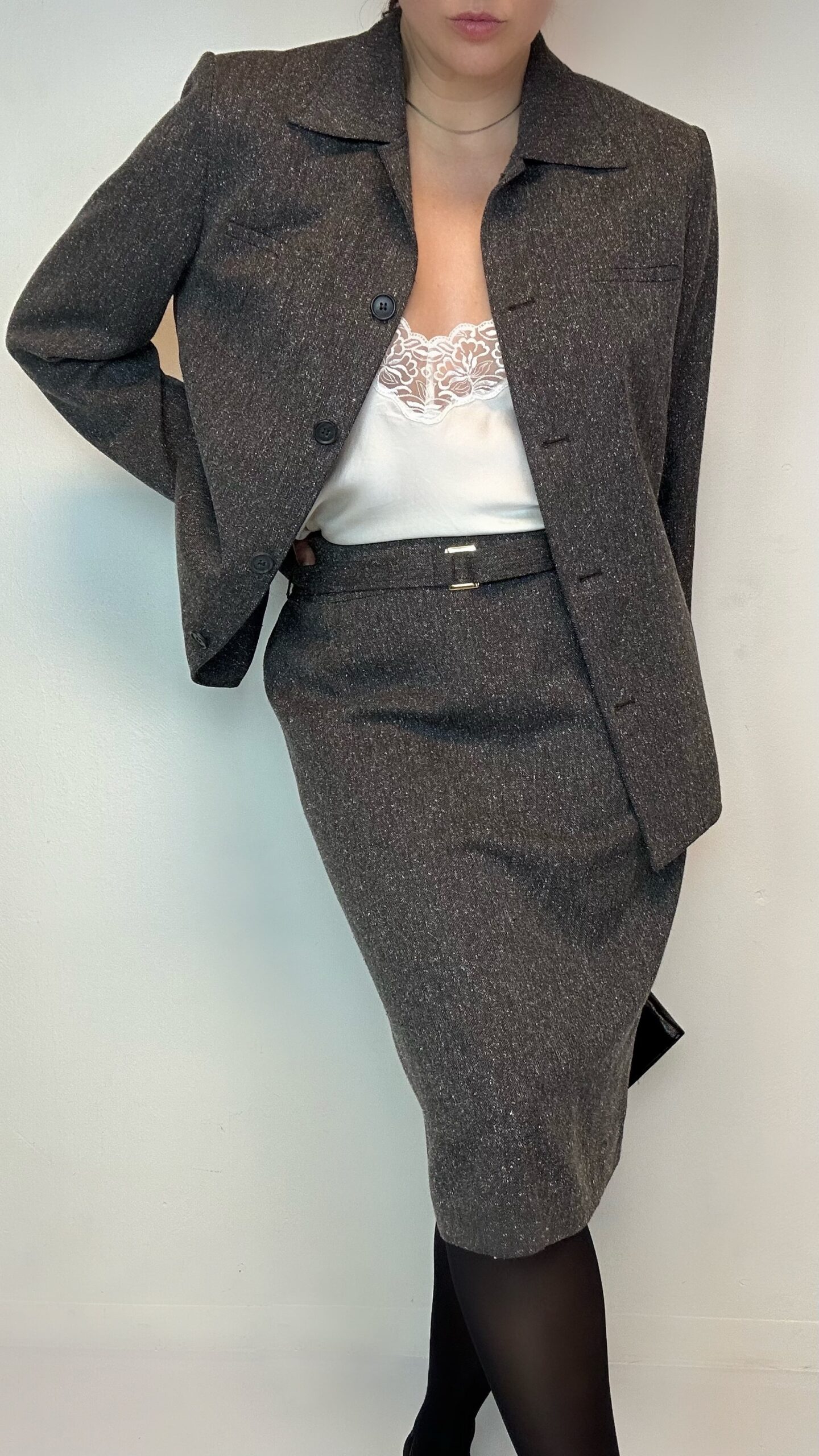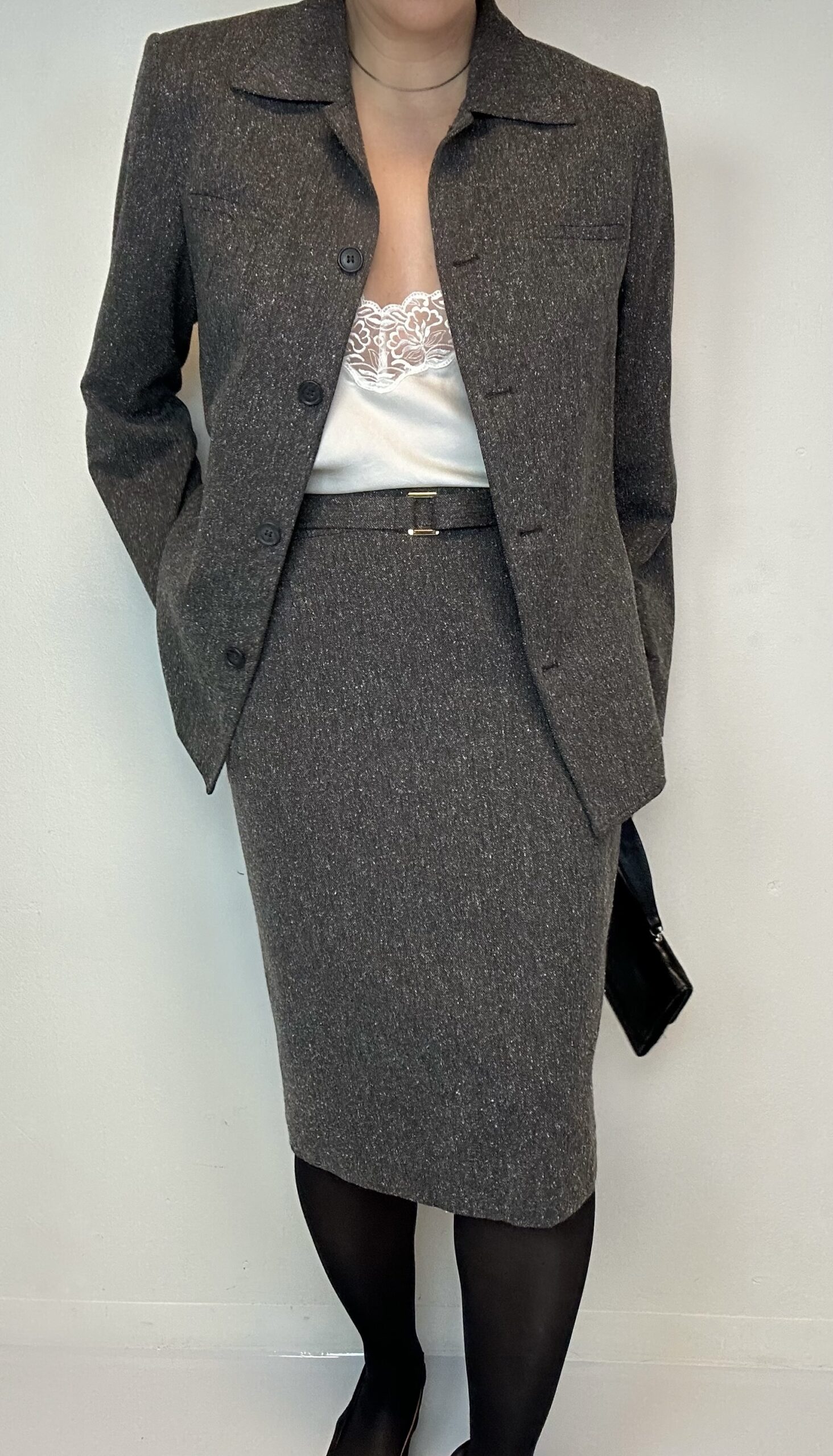Grey classic office lady set1 in stock 187$ Grey classic office lady set. Material: 75% Viscose 15% Wool 10% Silk Fit: M Jacket 43cm Shoulder to shoulder 102cm Chest 61cm Sleeve (from the shoulder) 64cm Length Skirt 76cm Waist 102cm Hips 63cm Length 1 in stock Grey classic office lady set quantity Add to cart Categories: All, Sets