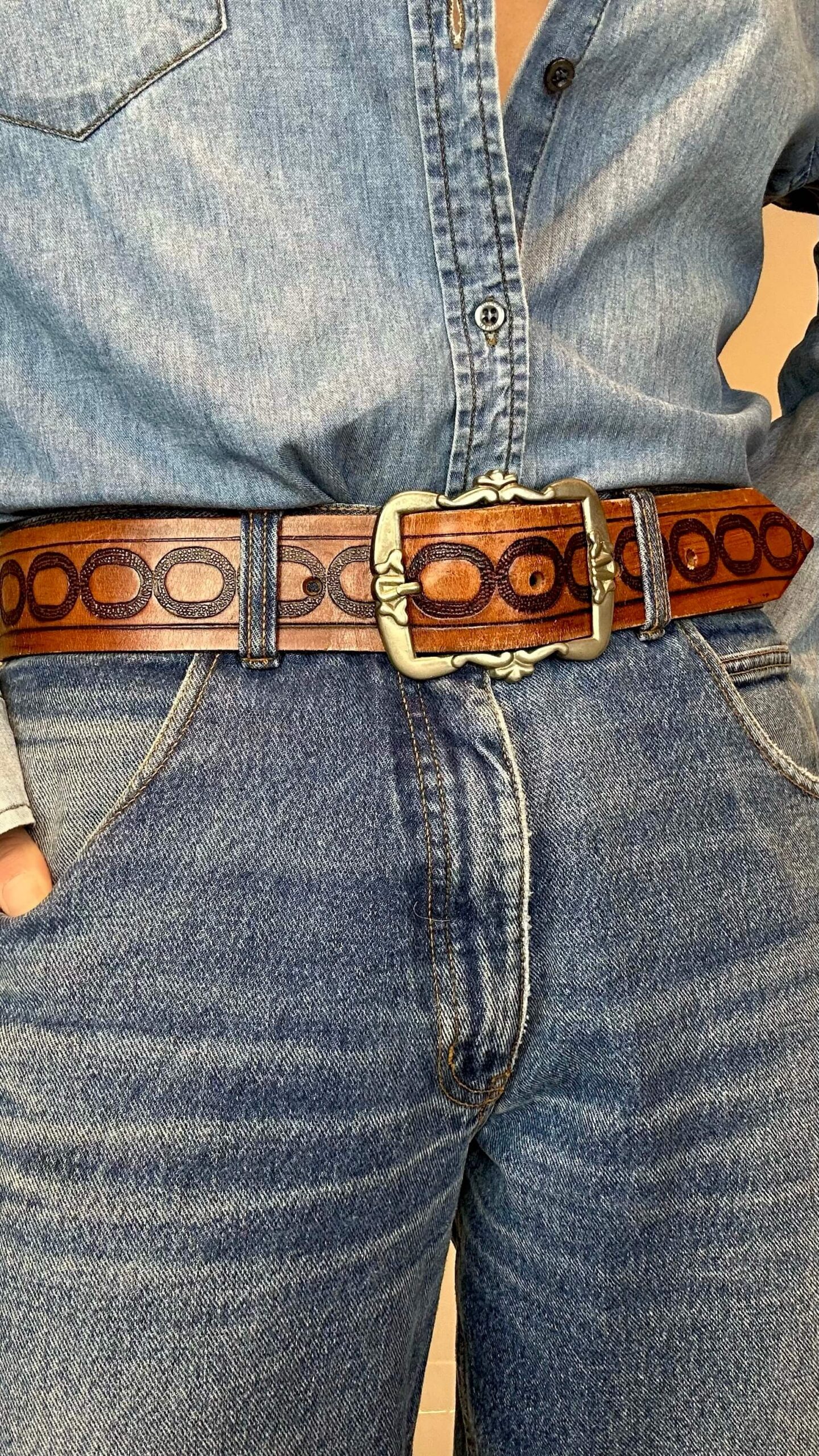 Heavy leather cowboy style belt