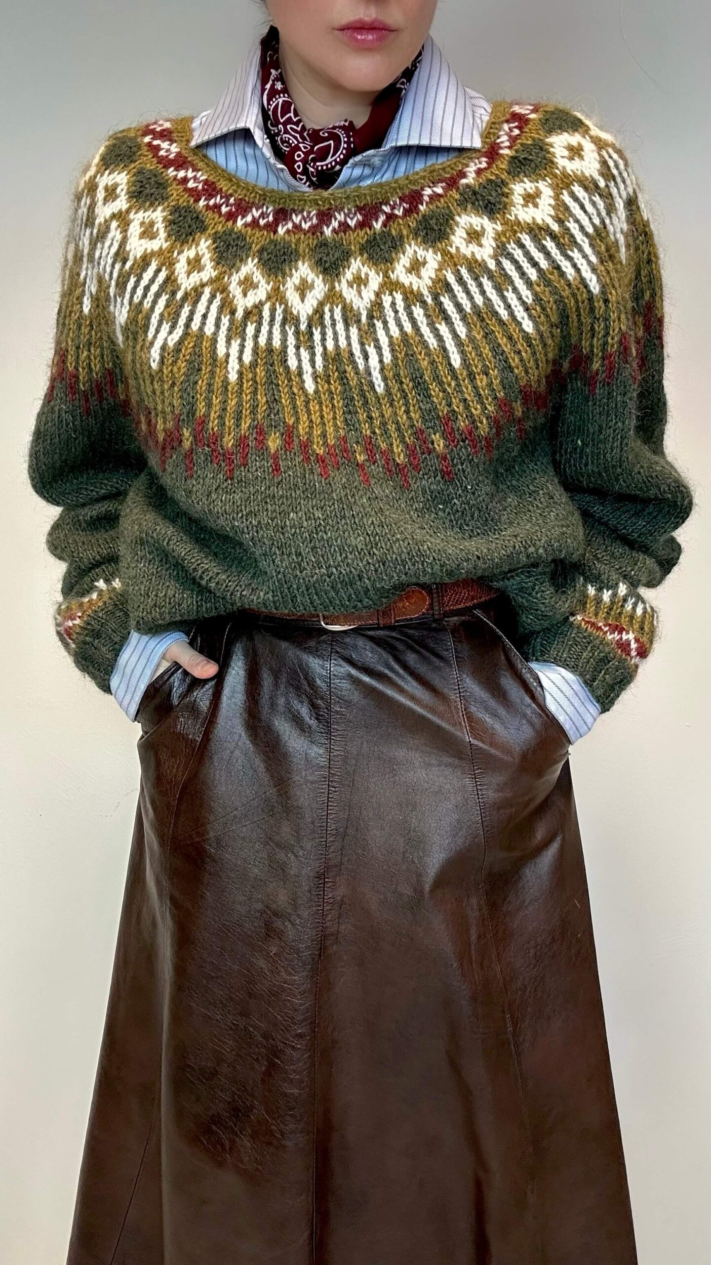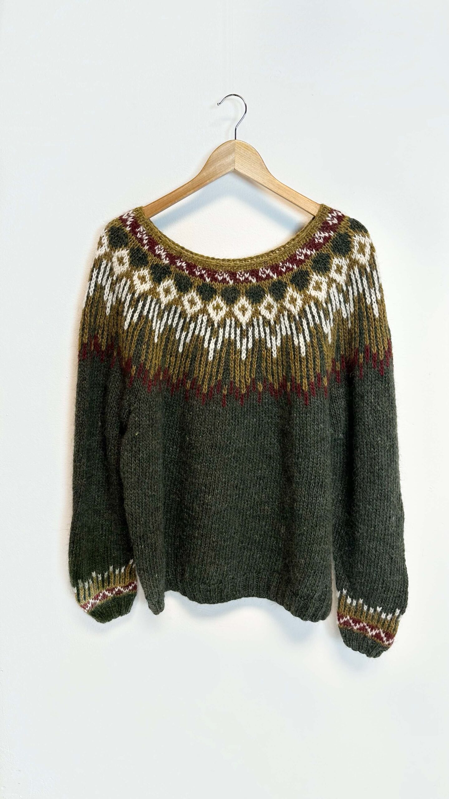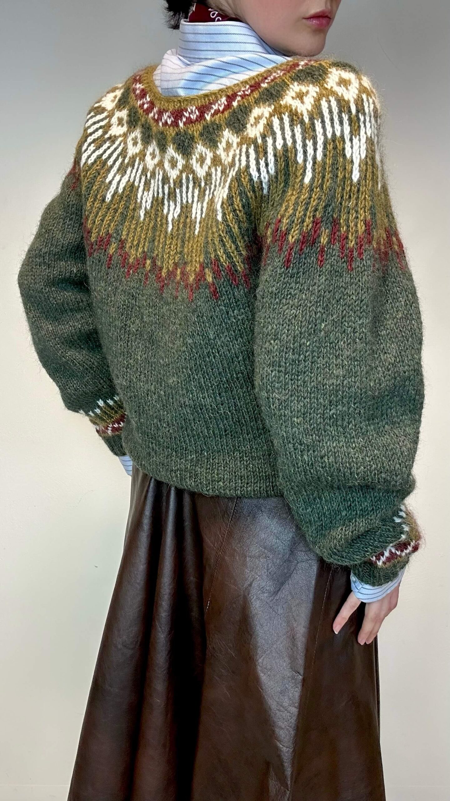 Icelandic hand-knitted wool green sweater1 in stock 166$ Icelandic hand-knitted wool green sweater Material: 100% Wool Fit: cm Chest cm Sleeve (from the neckline) cm Length 1 in stock Icelandic hand-knitted wool green sweater quantity Add to cart Category: Subscribers