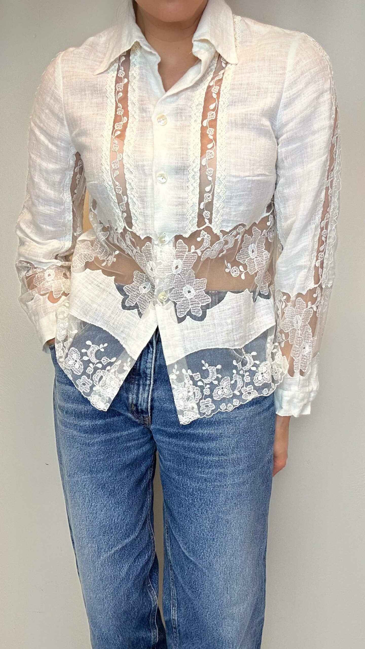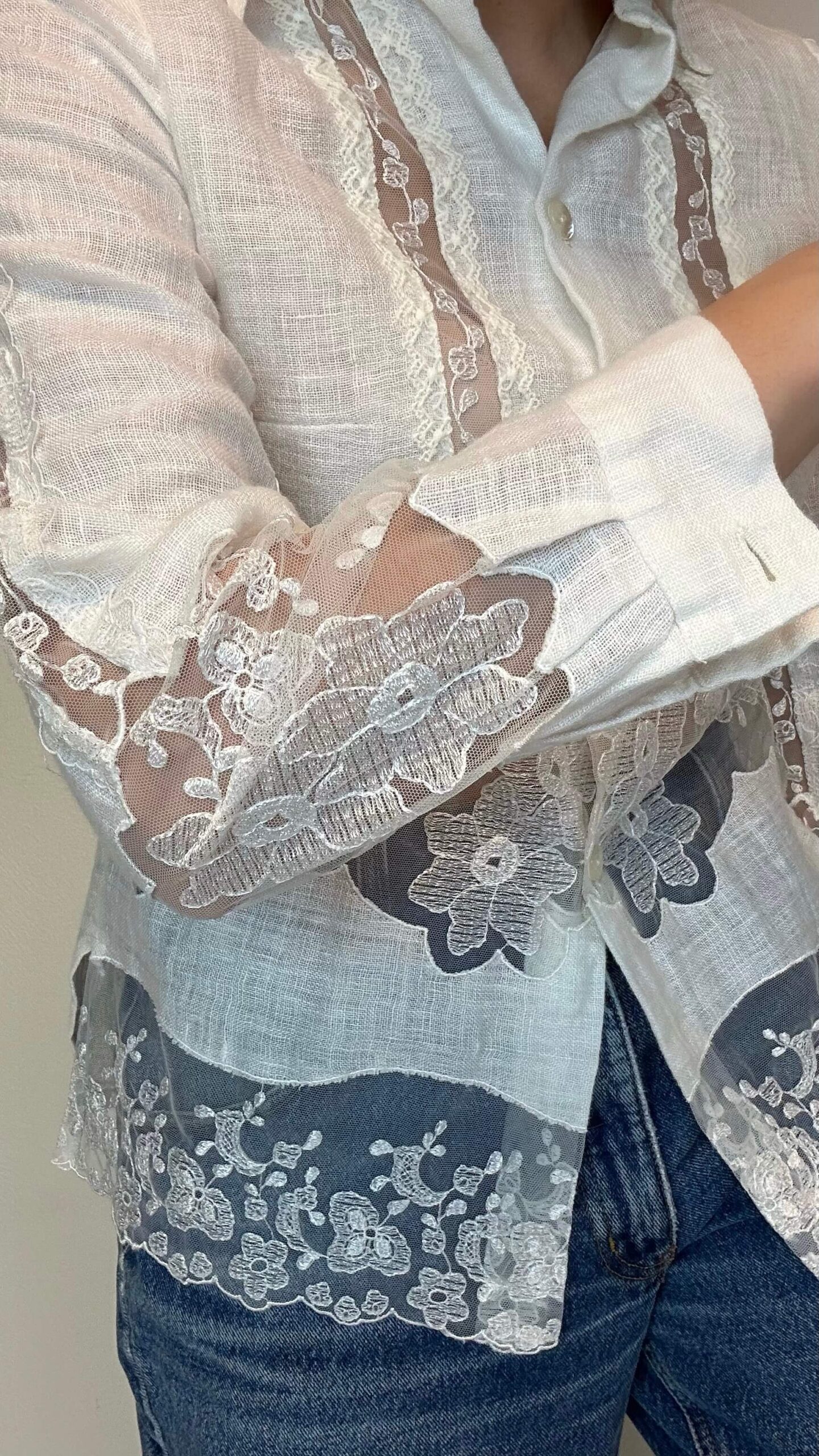 Italian heavy embroidered off white blouse1 in stock 120$ Italian heavy embroidered off white blouse Material: 100% Cotton Fit: XS 39cm Shoulder to shoulder 92cm Chest 62cm Sleeve (from the shoulder) 59cm Length 1 in stock Italian heavy embroidered off white blouse quantity Add to cart Categories: All, Blouses
