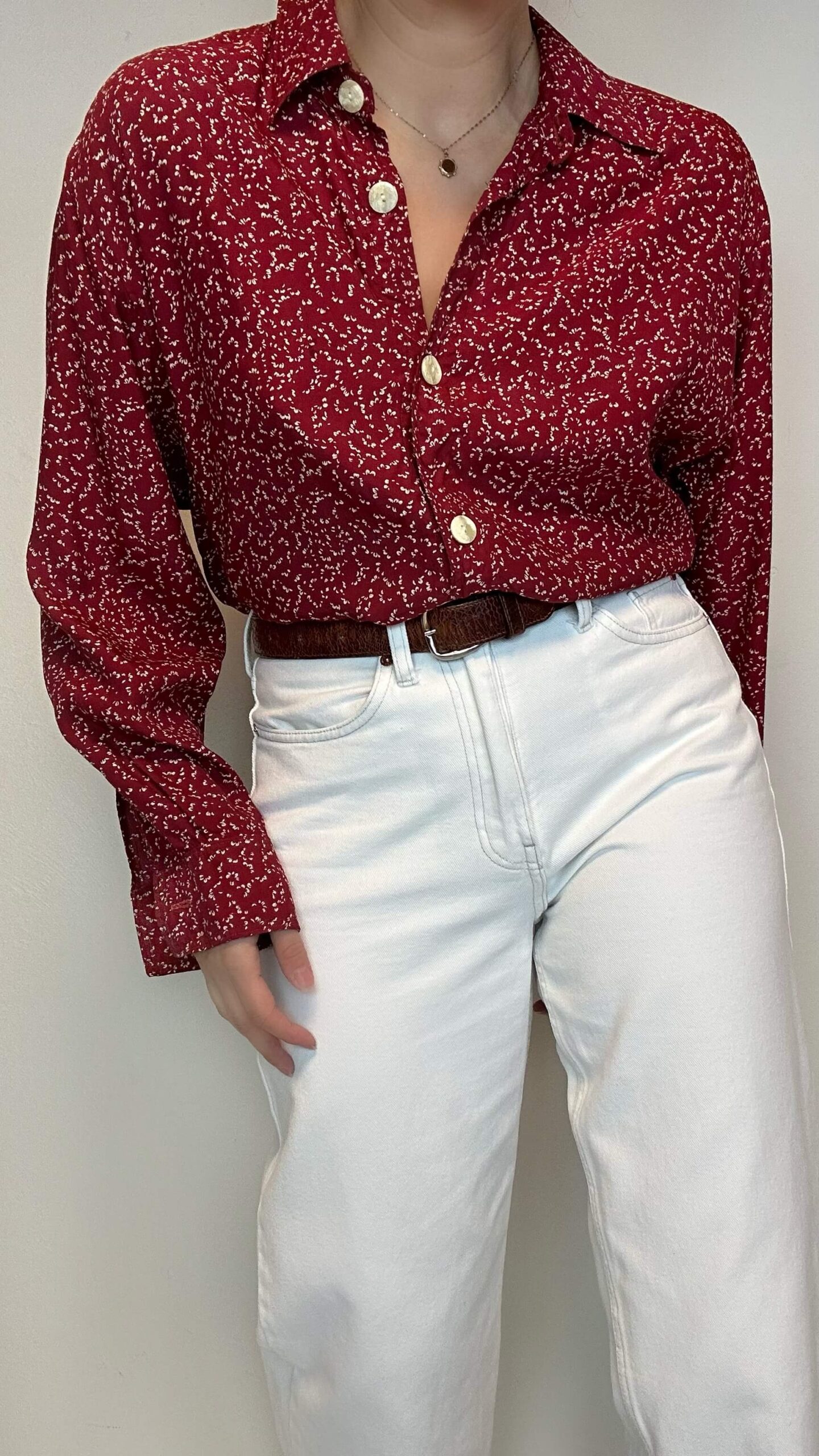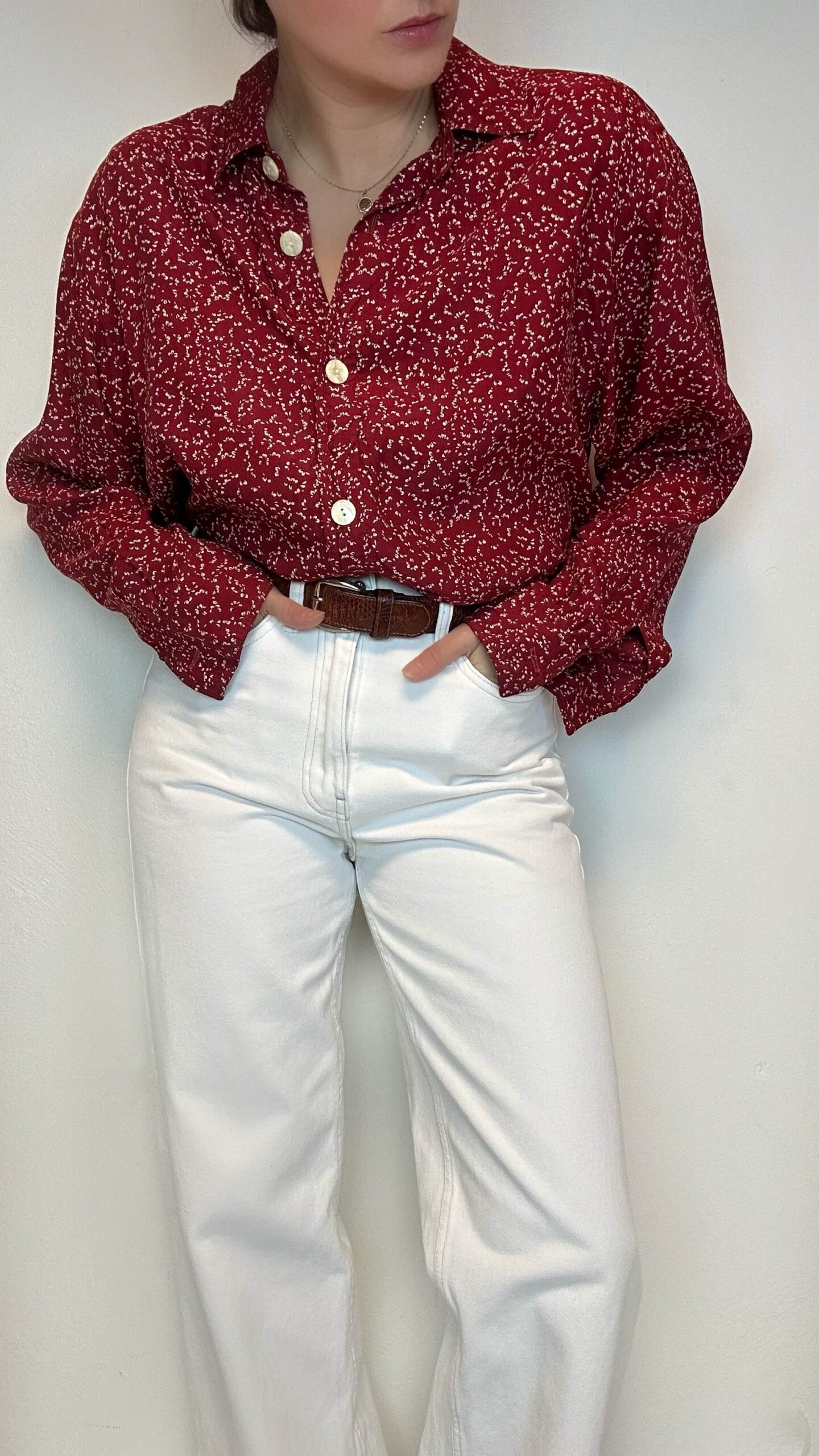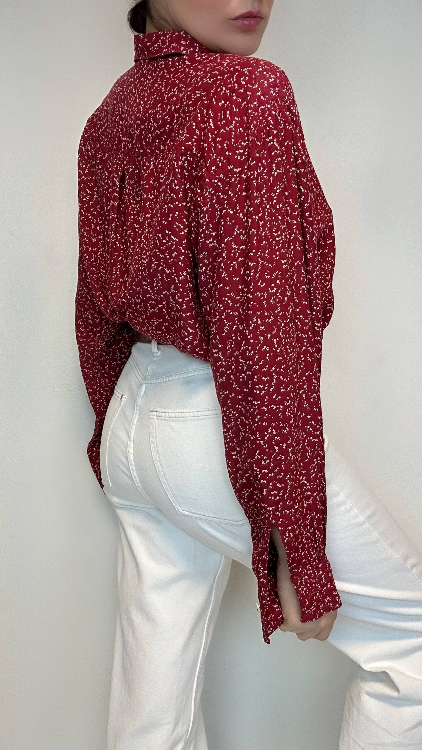 Jam red blouse with a flower print.