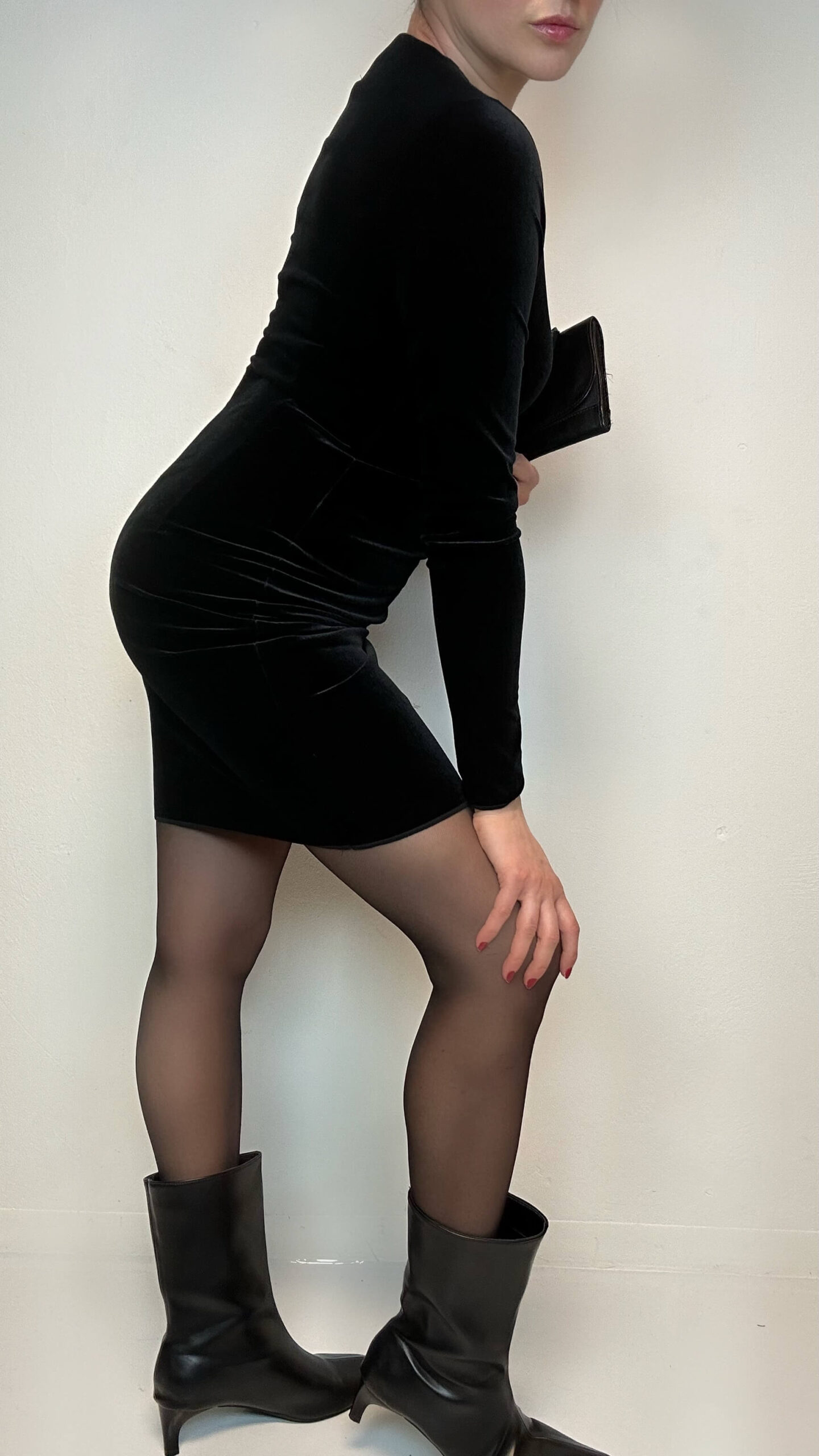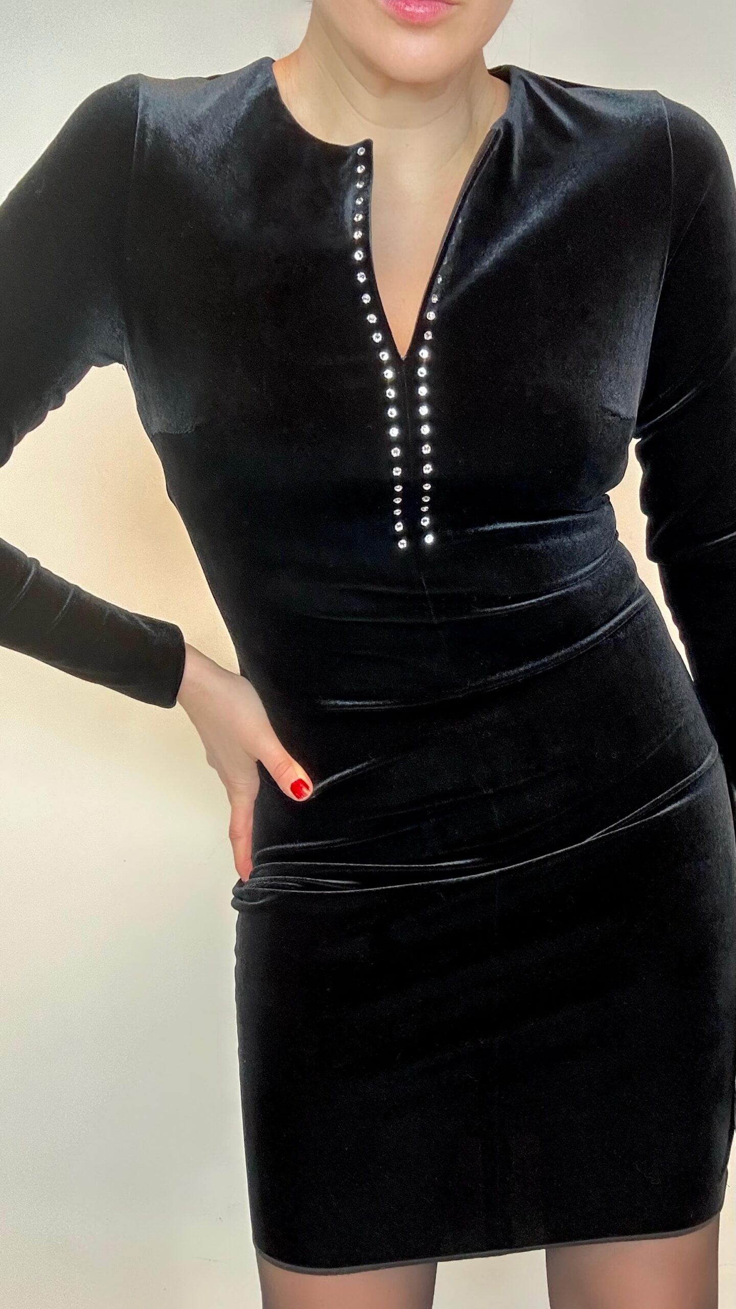 Las Vegas stretchy velour bodycon dress with a crystal v-neck.