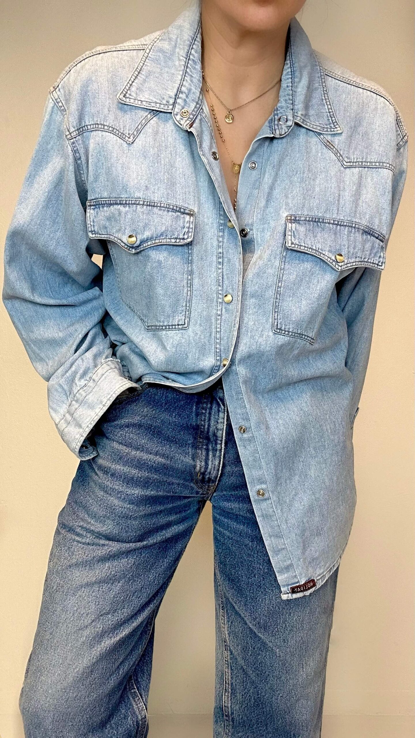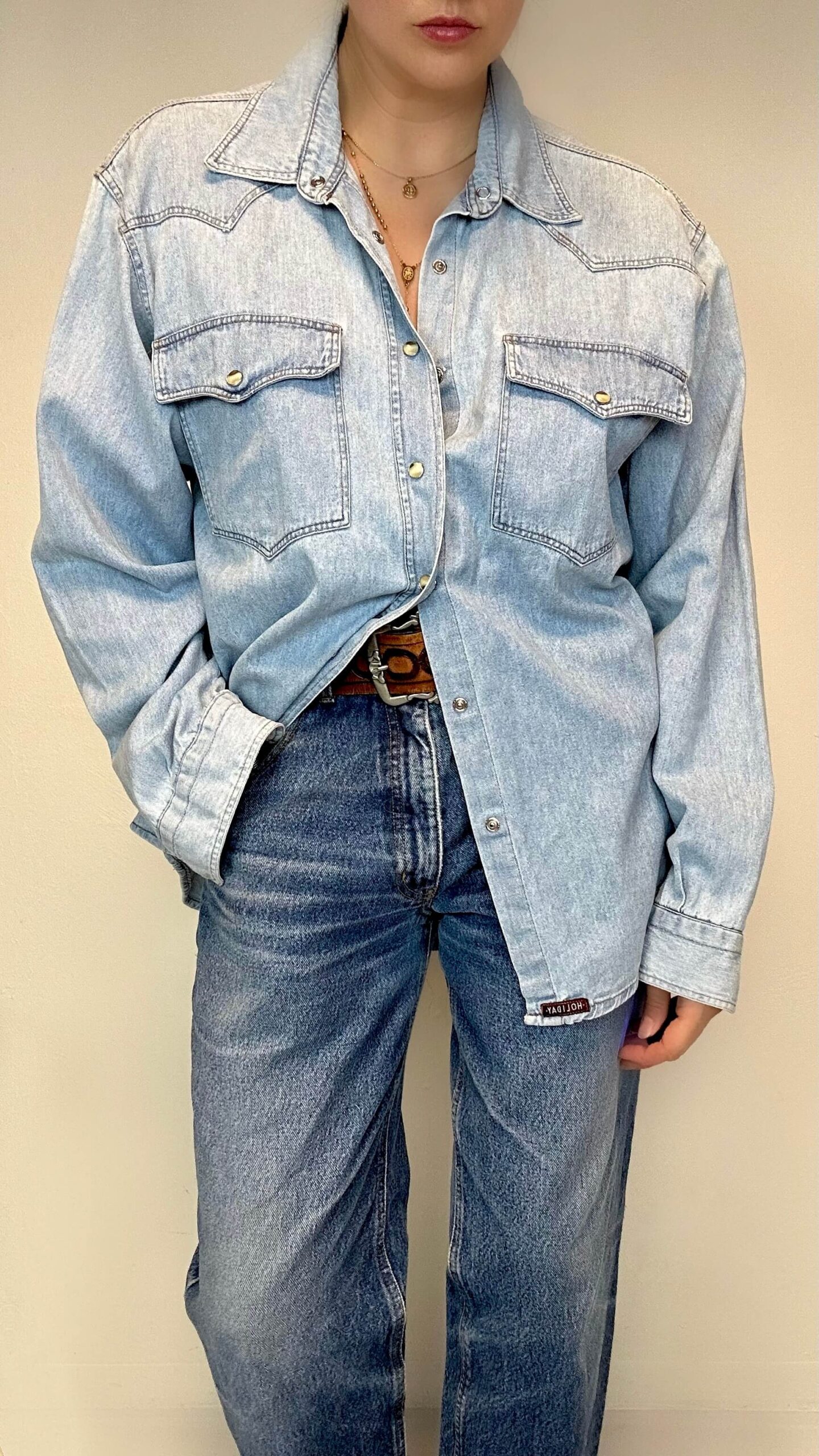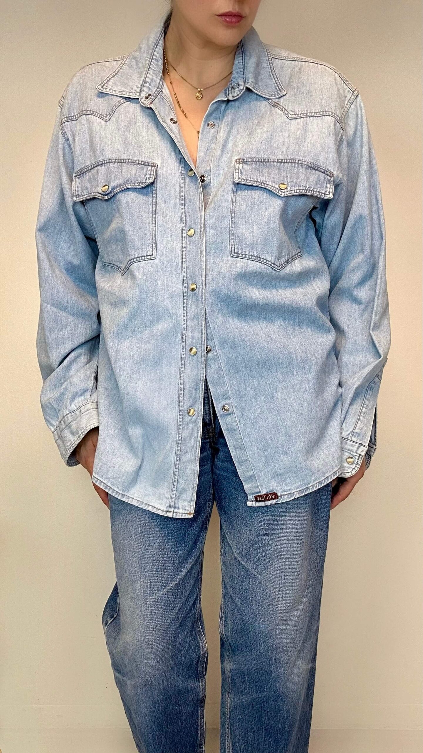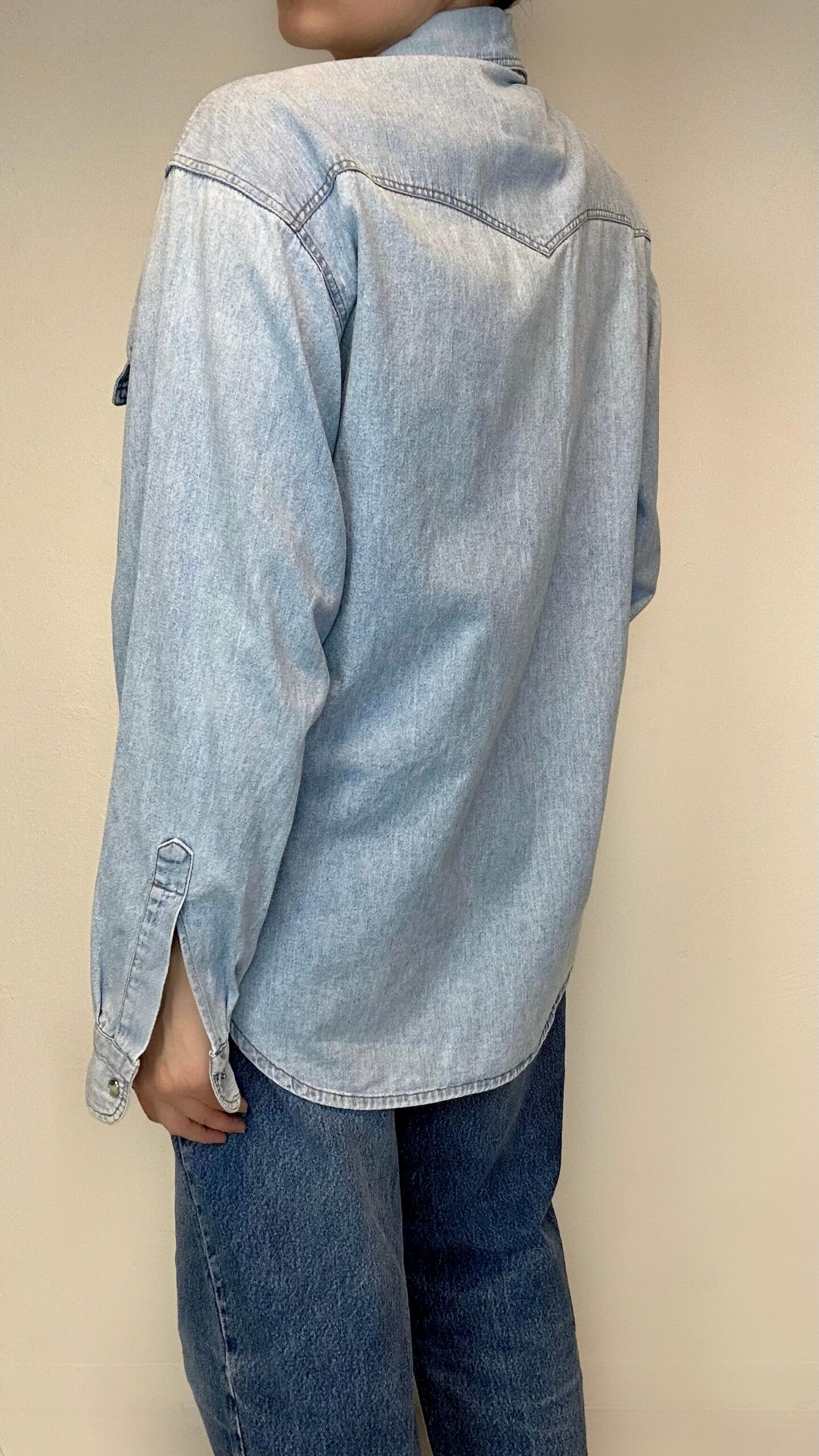 Light denim masculine shirt1 in stock 80$ Light denim masculine shirt. Material: 100% Cotton Fit: L/XL 112cm Chest 81cm Sleeve (from the neckline) 78cm Length 1 in stock Light denim masculine shirt quantity Add to cart Categories: All, Blouses