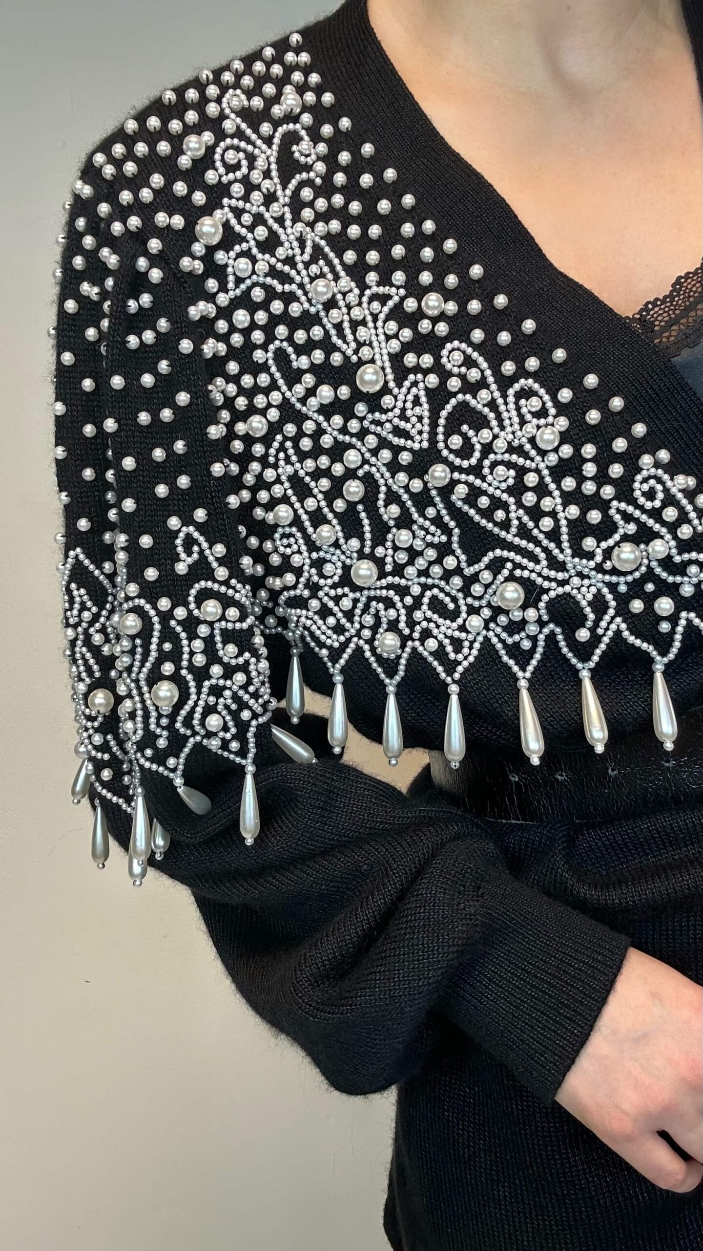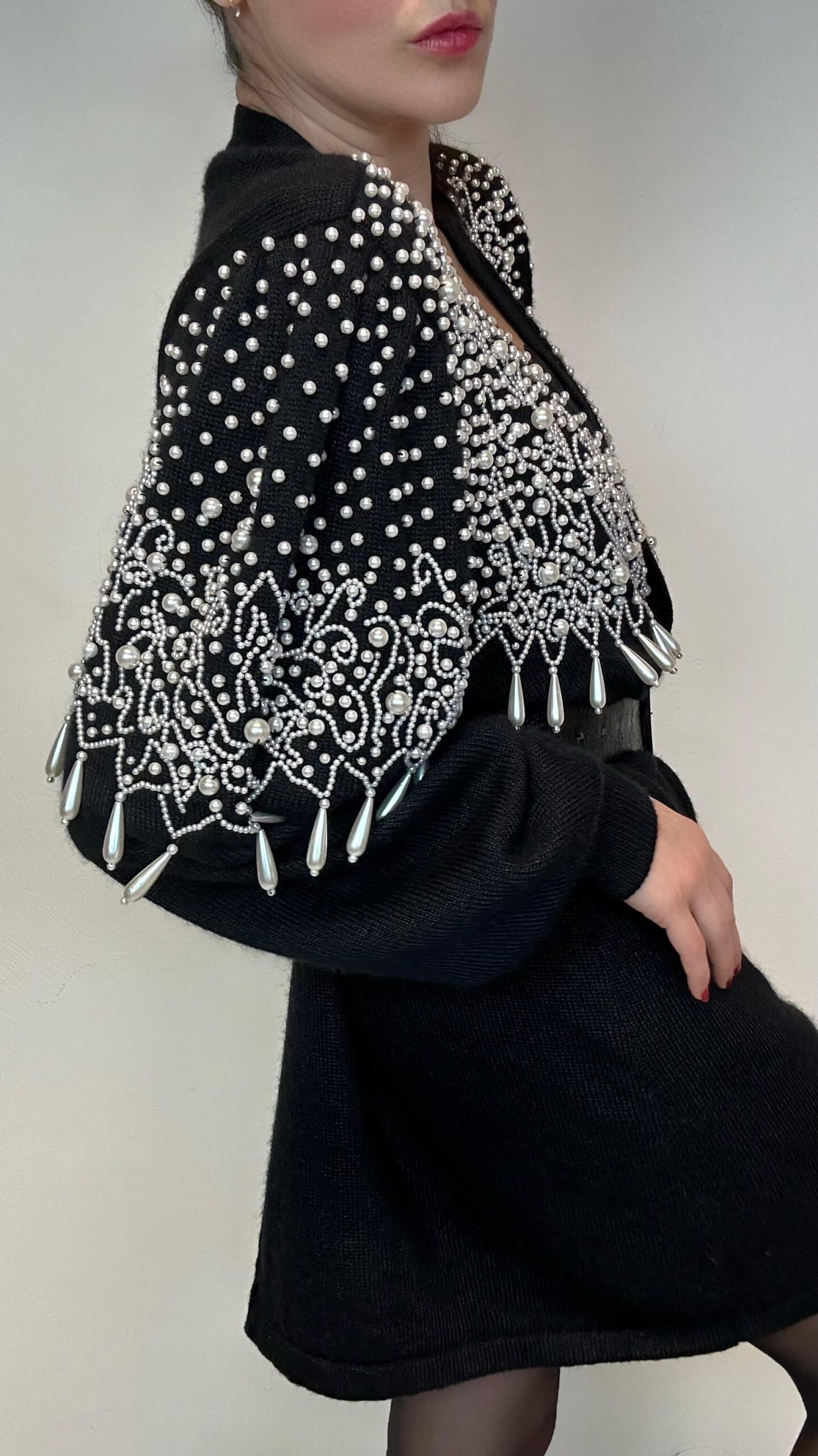 Midnight pearl noir wrap woolen cardigan