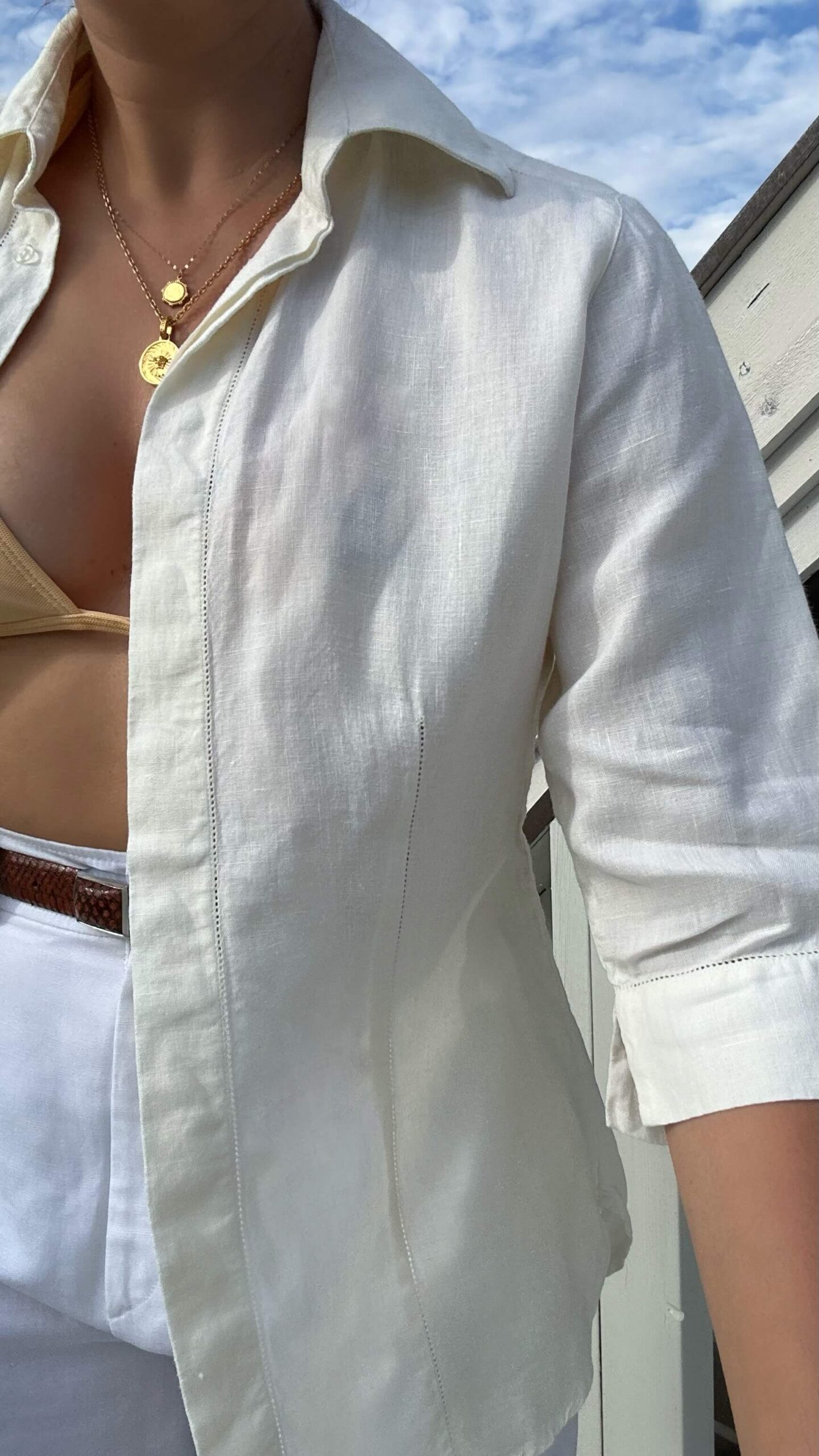 Linen must have beige cotton blouseSOLD 90$ Linen must have beige cotton blouse. Material: 100% Linen Fit: S/M 41cm Shoulder to shoulder 101cm Chest 40cm Sleeve (from the shoulder) 68cm Length SOLD Categories: All, Blouses
