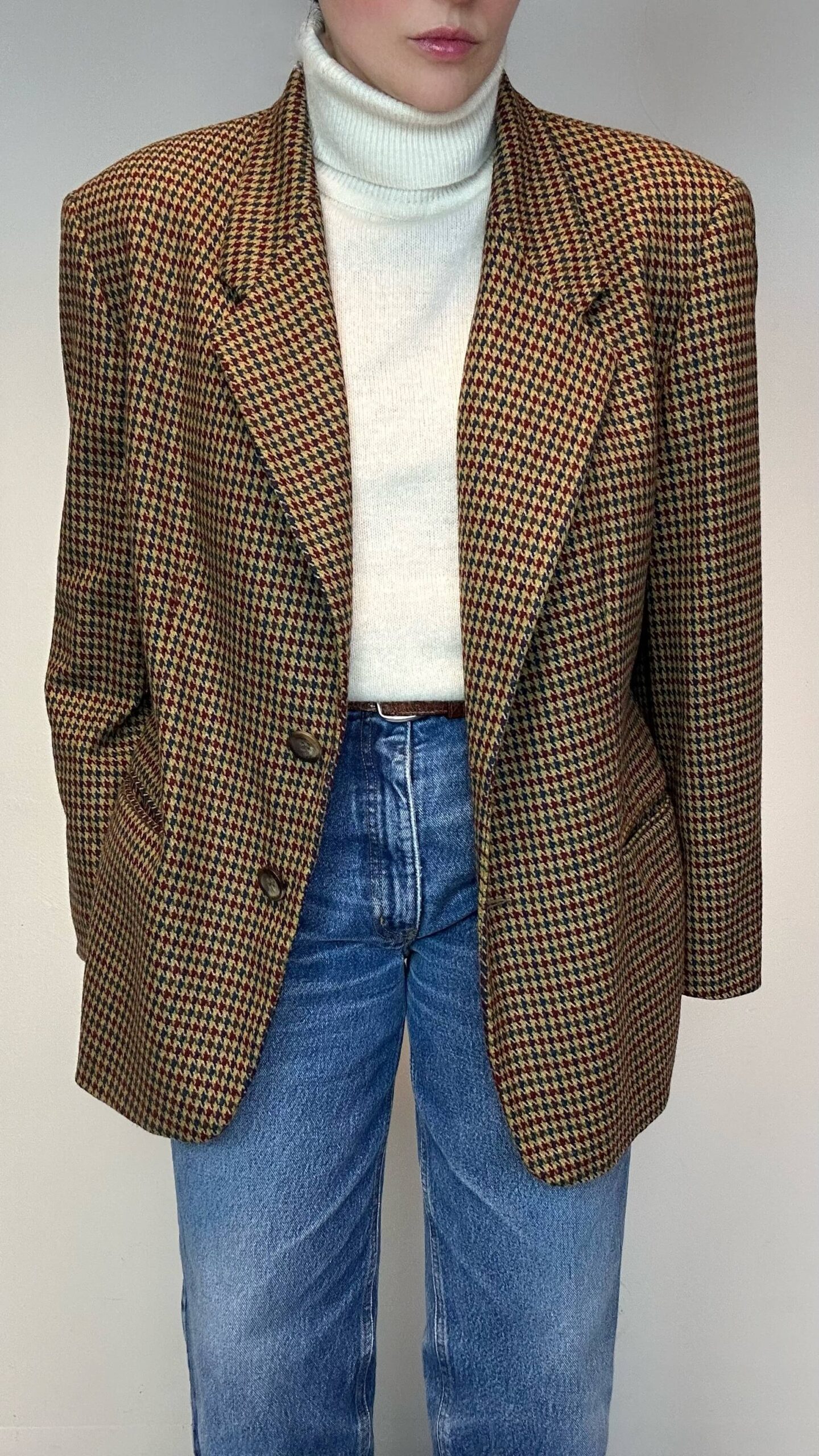 Old money houndstooth wool blazer1 in stock 155$ Old money houndstooth wool blazer. Unisex Material: 100% Wool Fit: cm Shoulder to shoulder cm Chest cm Sleeve (from the shoulder) cm Length 1 in stock Old money houndstooth wool blazer quantity Add to cart Category: Subscribers