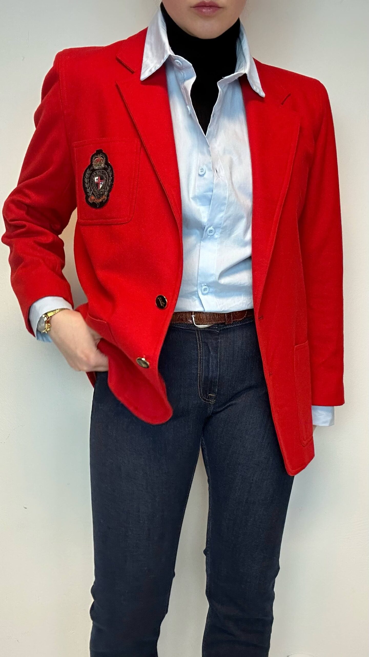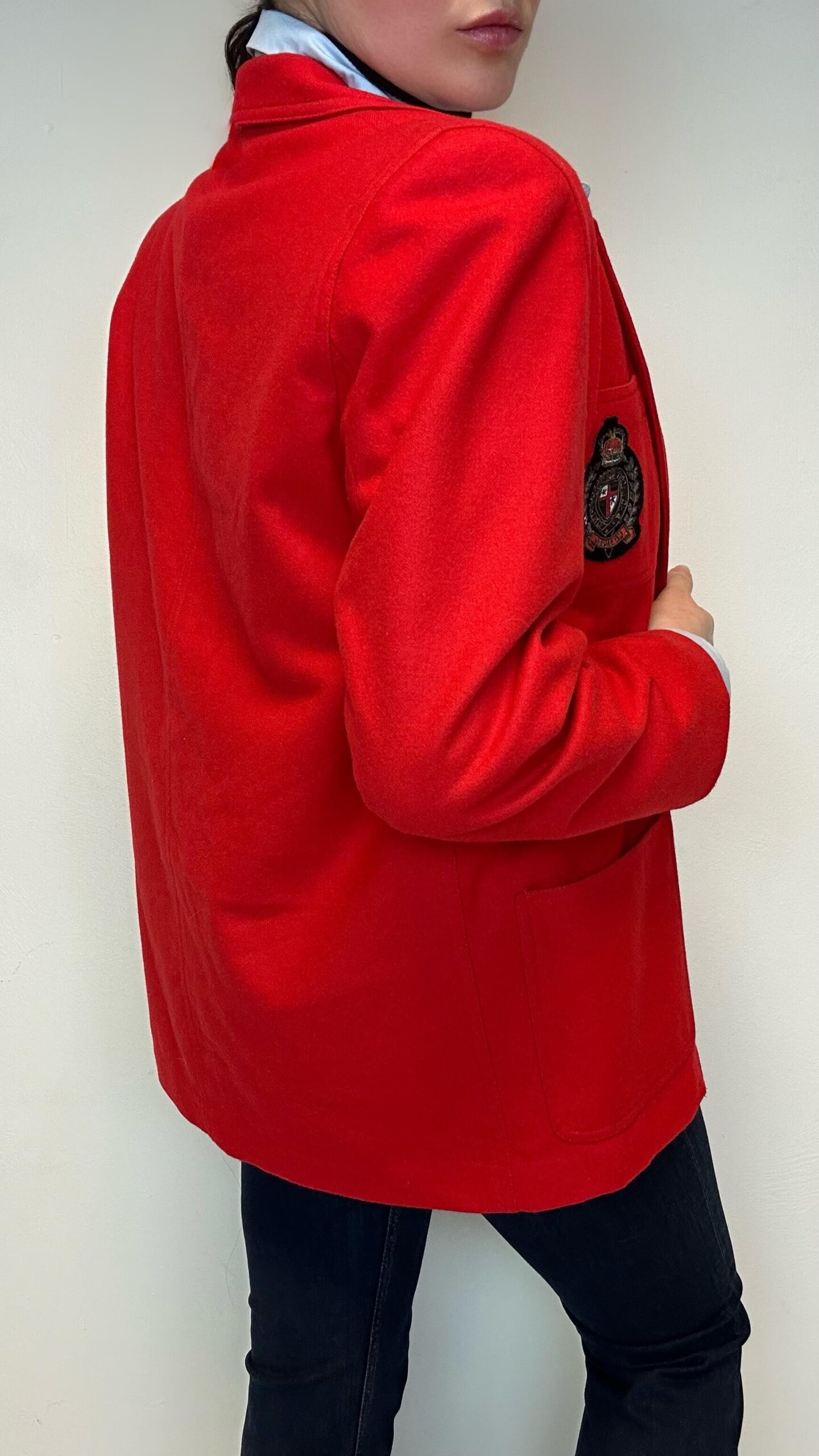 Red wool blazer with a crown applique