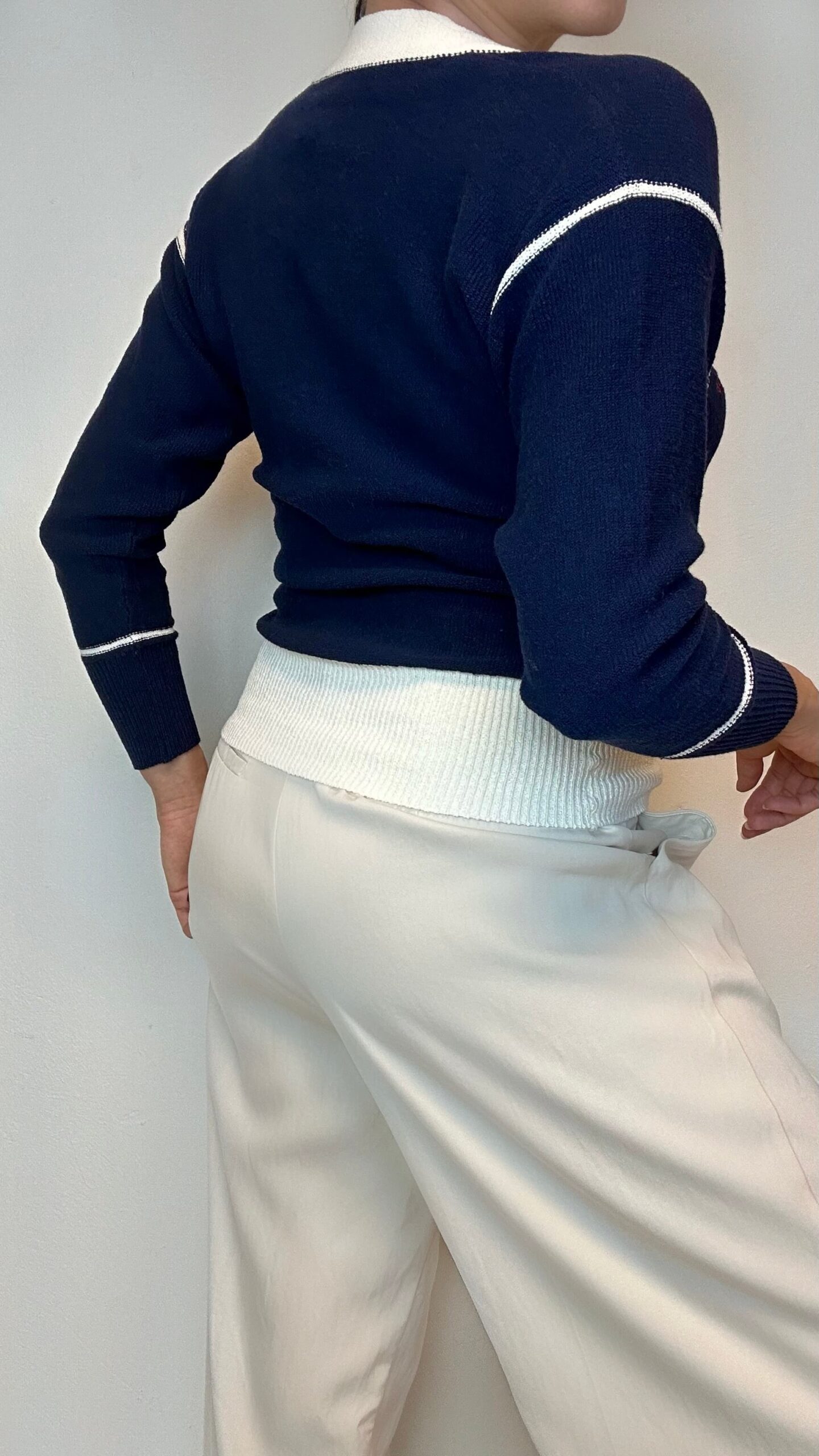 Royal dark blue stretchy golf cardigan. NEW with a tag.