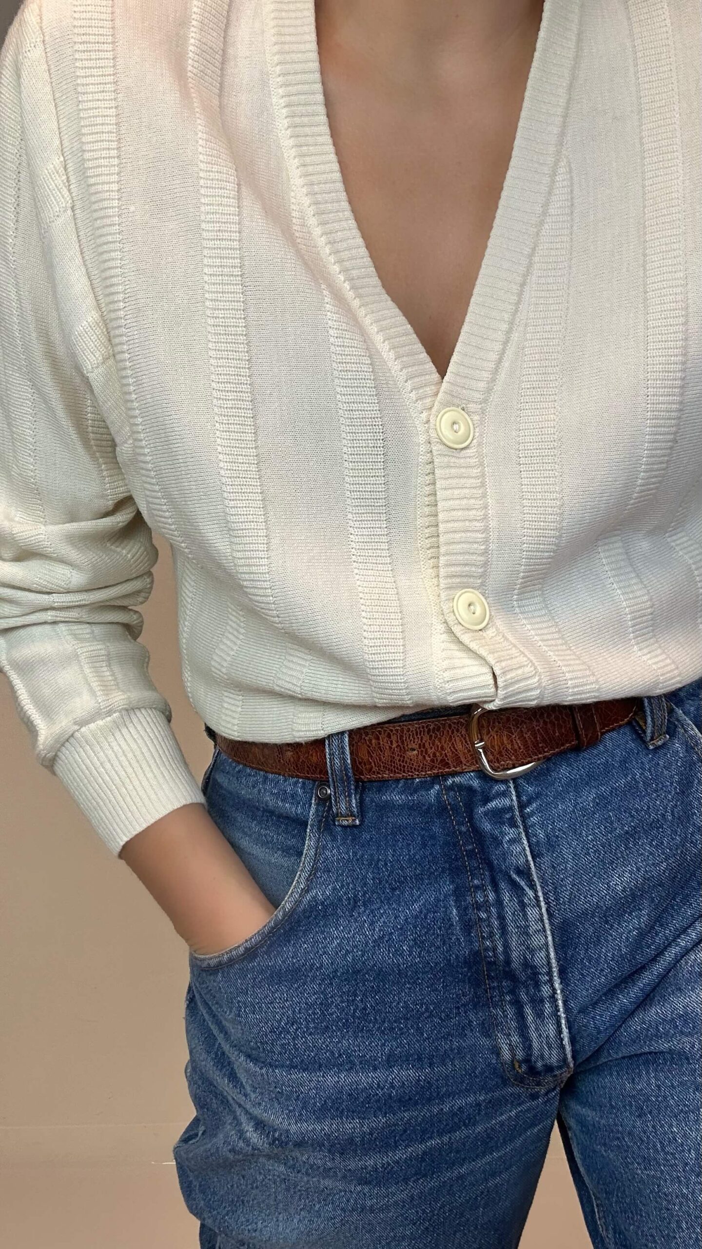 Sand beige knitted everyday cardigan.