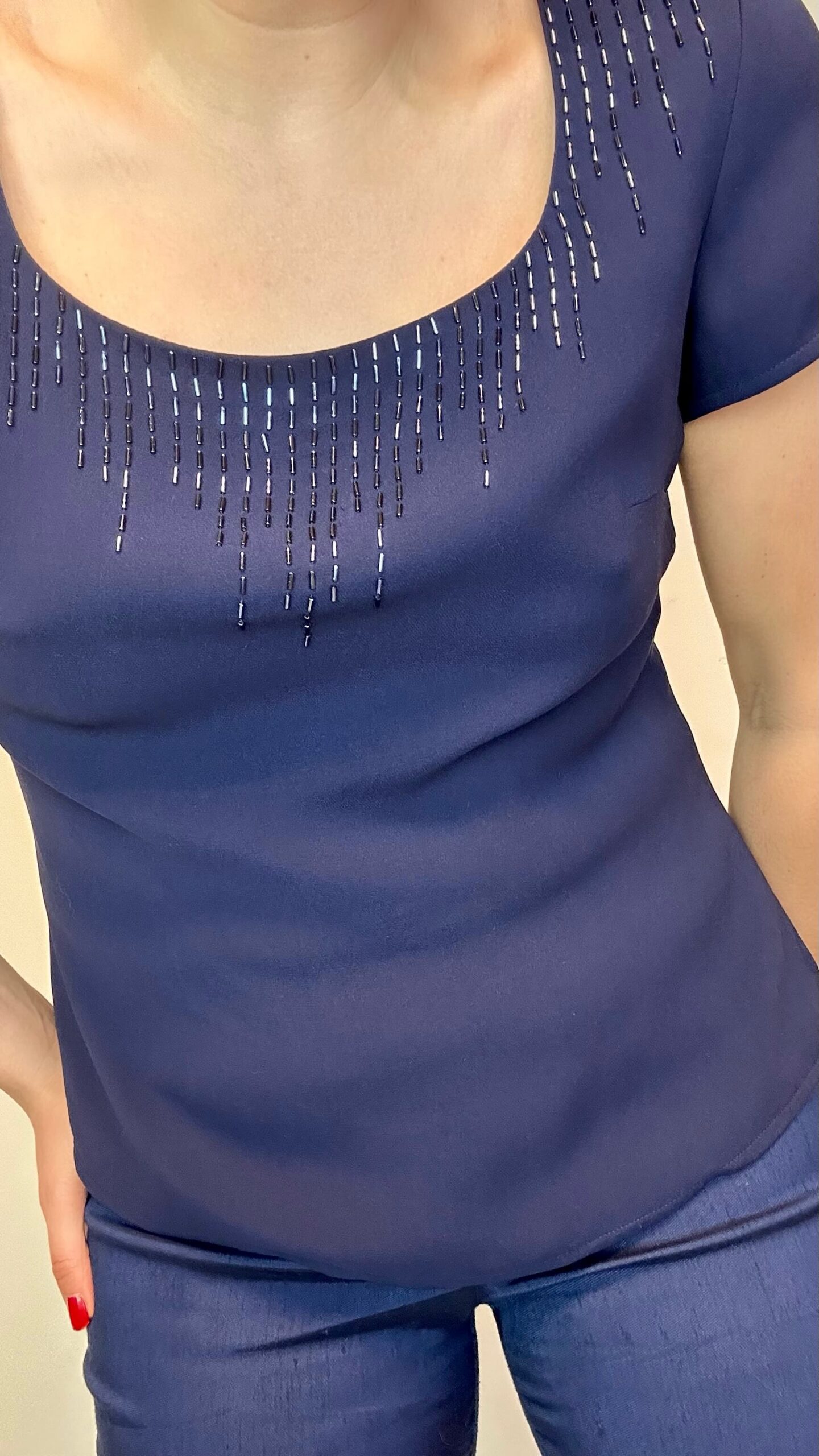 Silk Luisa Spagnoli beaded short sleeve blouse