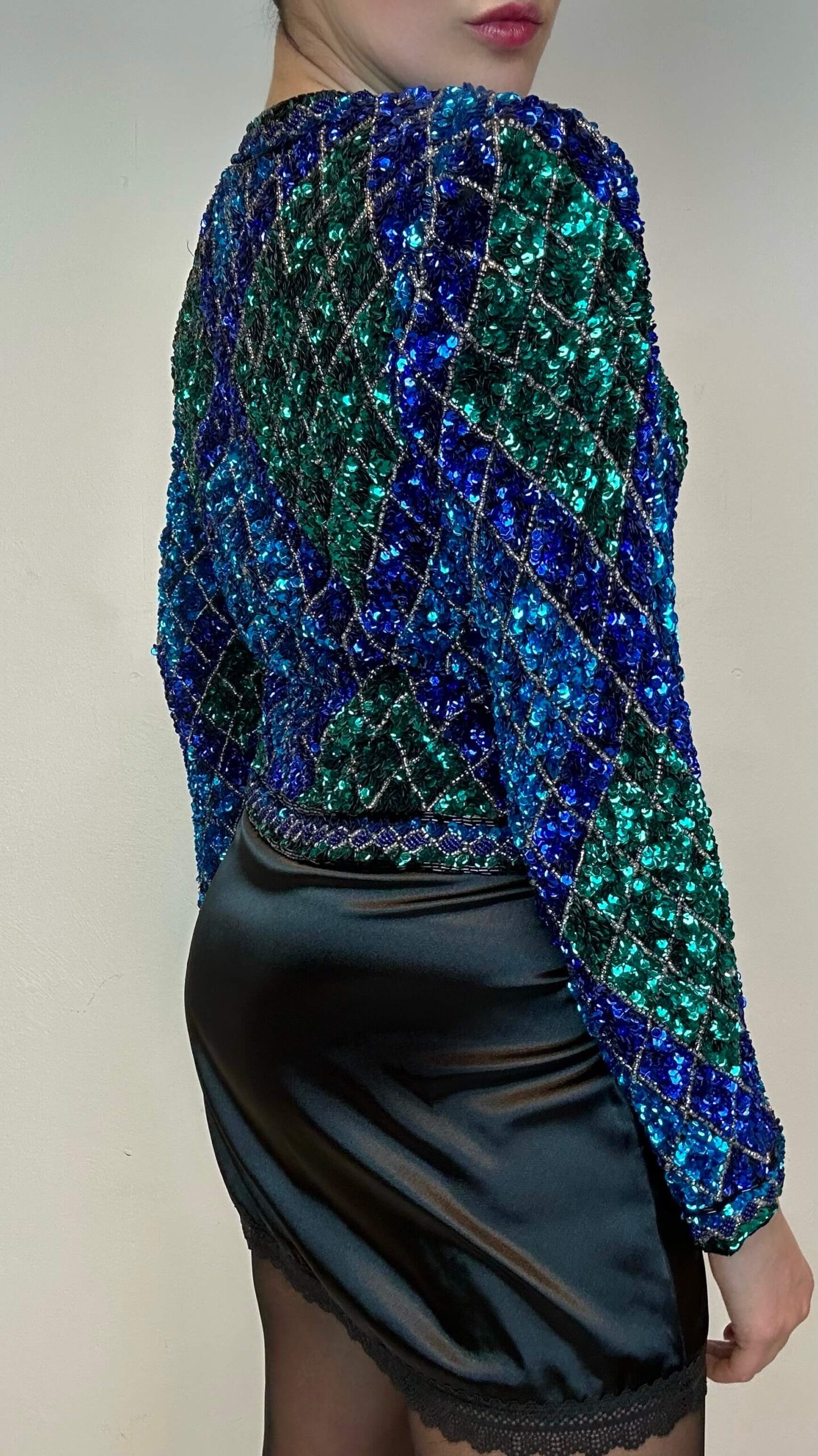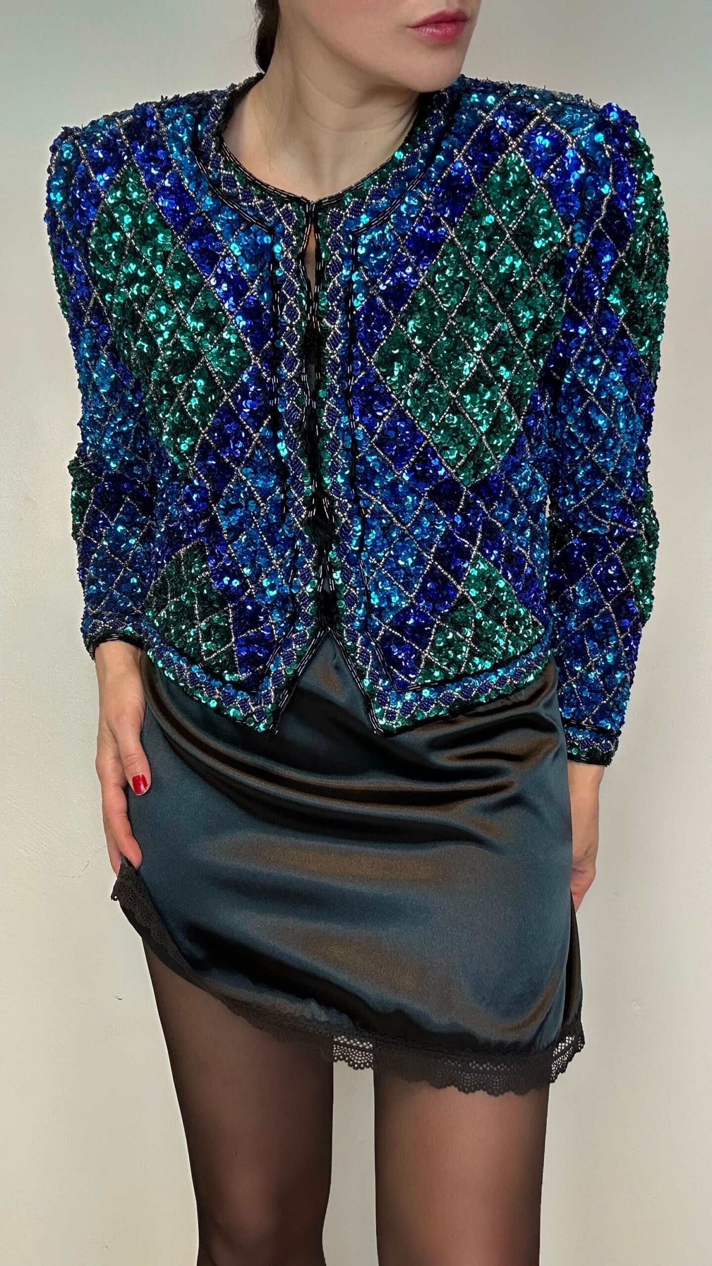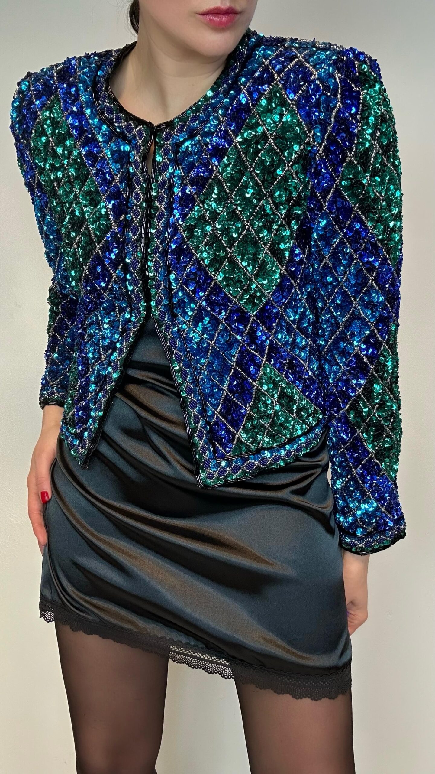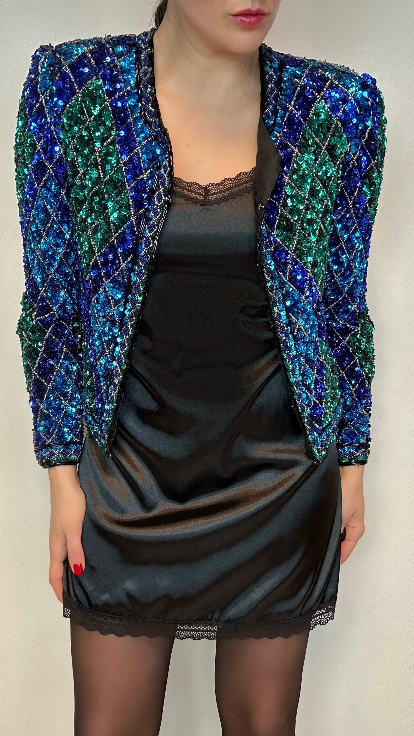 Statement emerald ocean sequin jacket