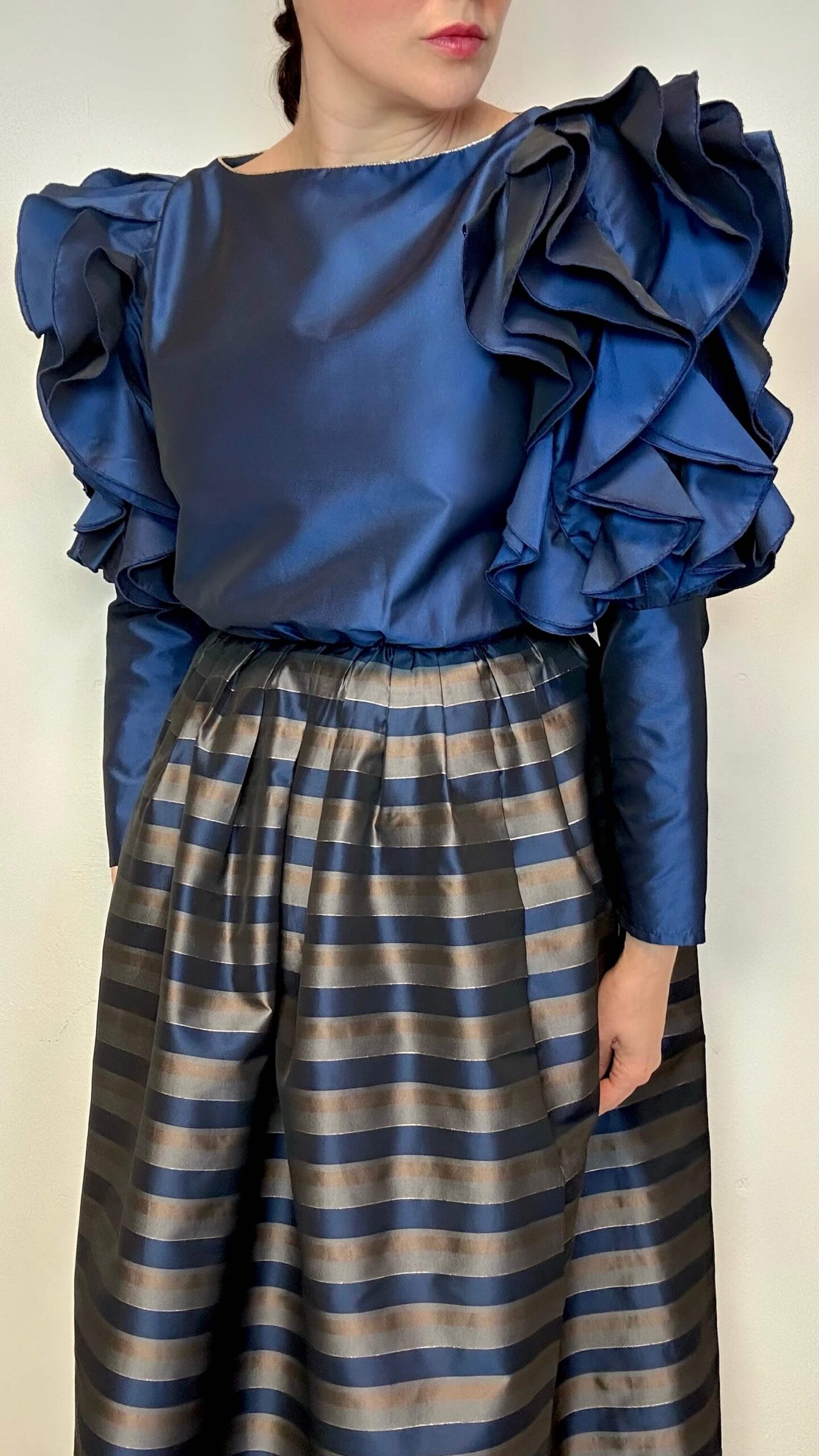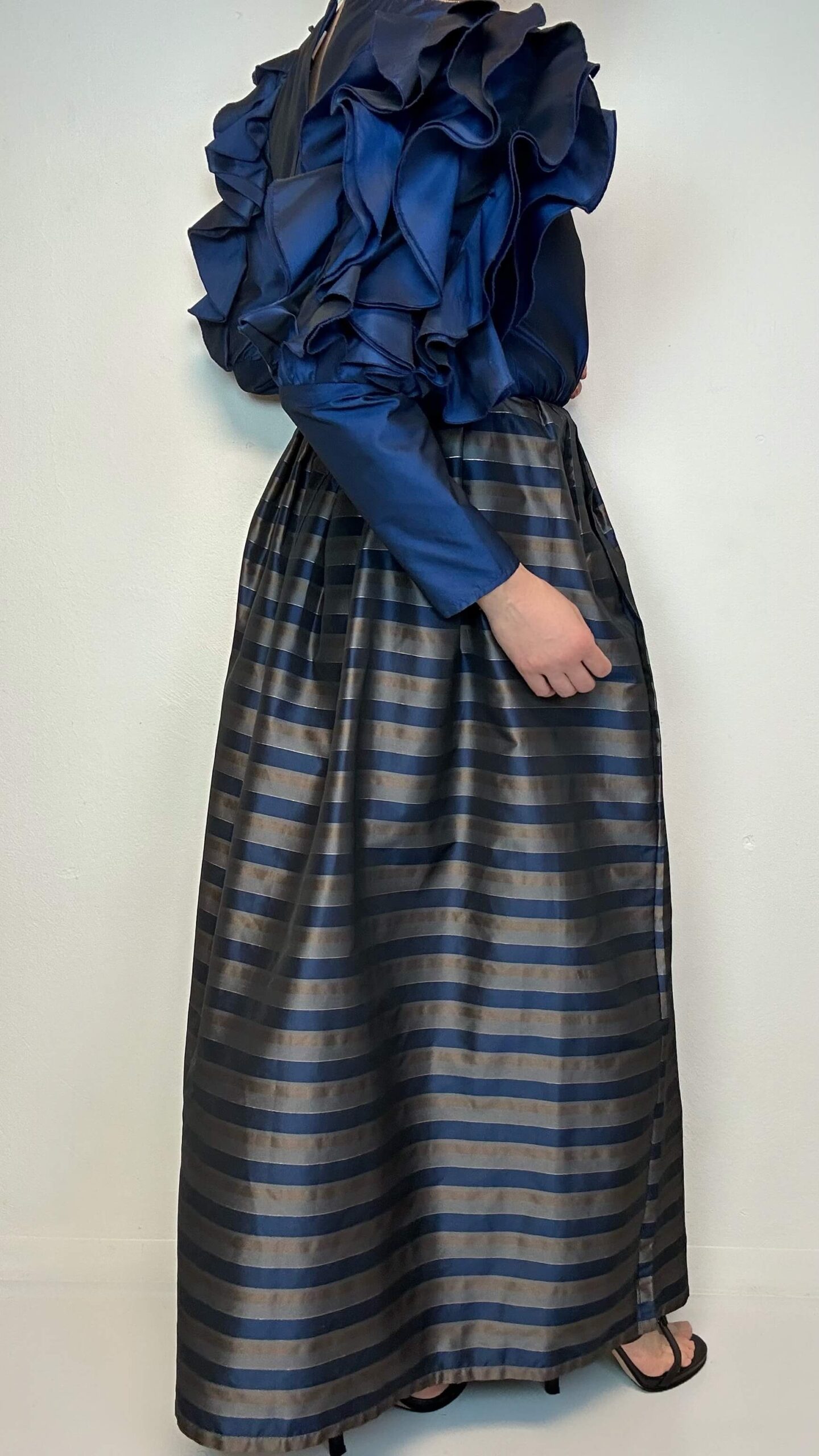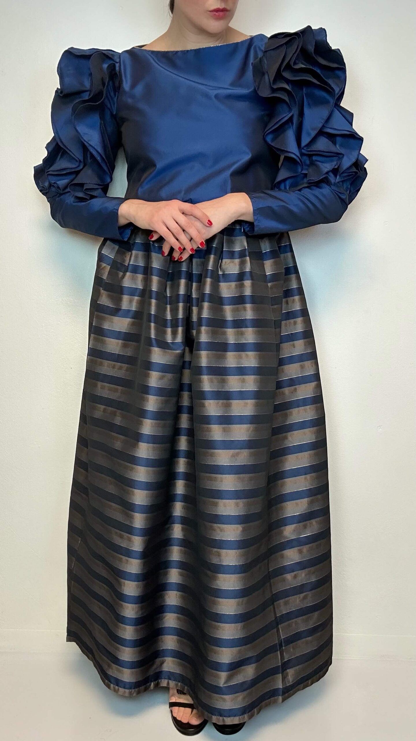 Statement maxi dress with large voguish sleeves1 in stock 199$ Statement maxi dress with large voguish sleeves. One of a kind. Material: Polyester Fit: M 94cm Chest 74cm Waist 63cm Sleeve (from the shoulder) 145cm Length 1 in stock Statement maxi dress with large voguish sleeves quantity Add to cart Categories: All, Dresses
