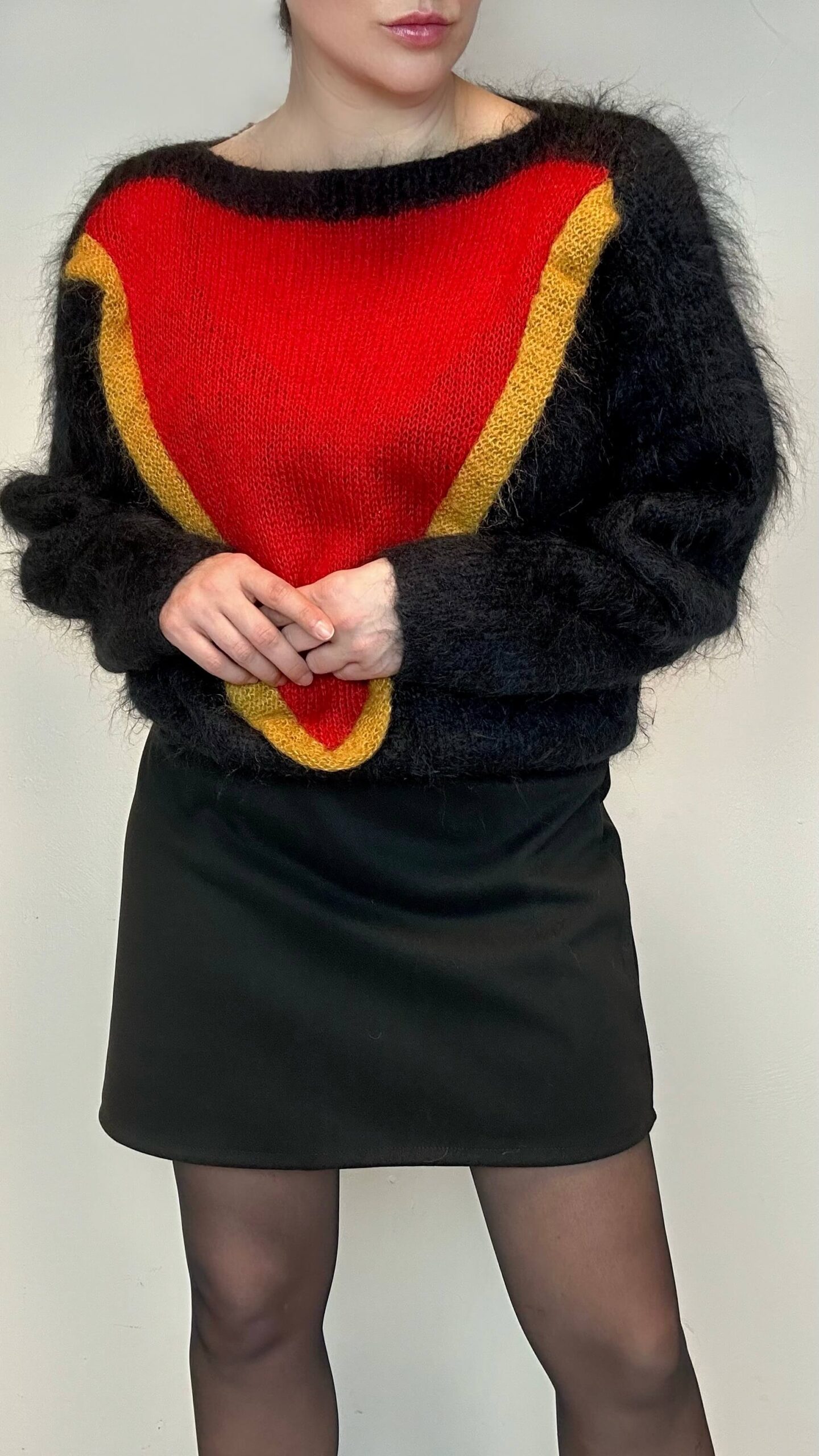 Statement mohair wool sweater1 in stock 142$ Statement mohair wool sweater Material: 100% Mohair Wool Fit: L/XL/XXL 126cm Chest 70cm Sleeve (from the neckline) 50cm Length 1 in stock Statement mohair wool sweater quantity Add to cart Category: Subscribers