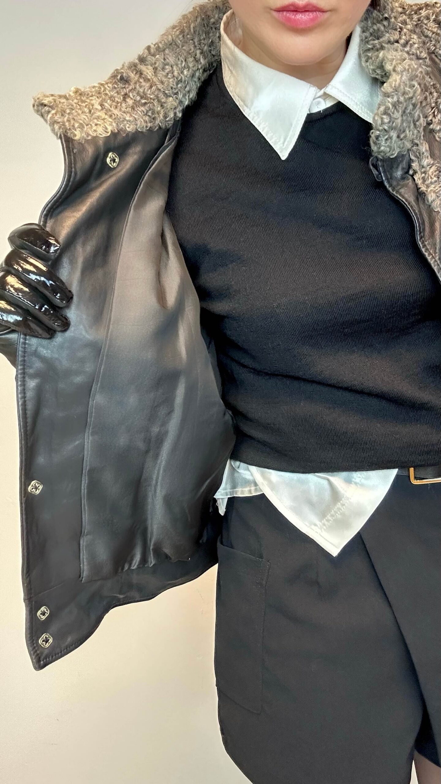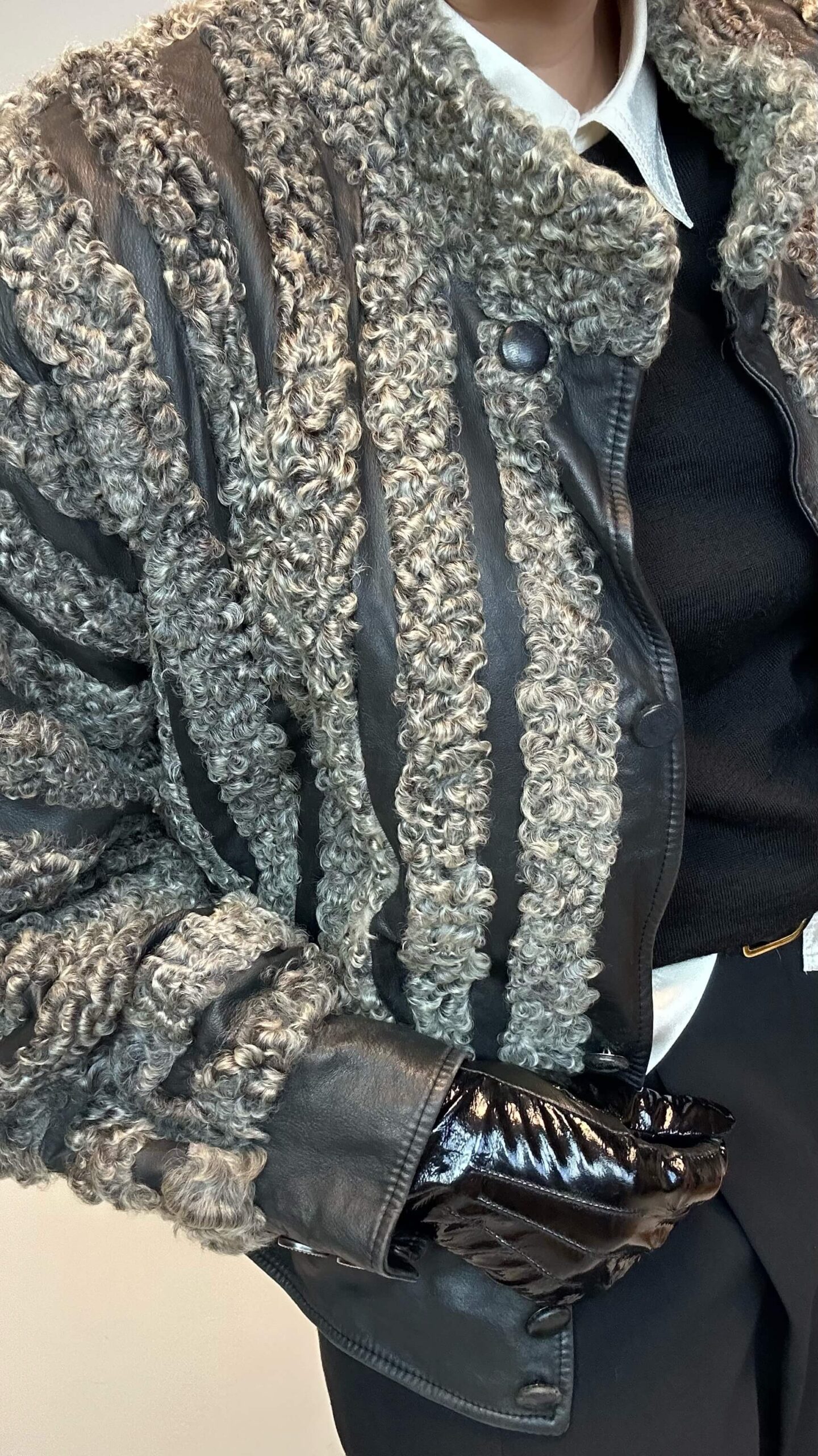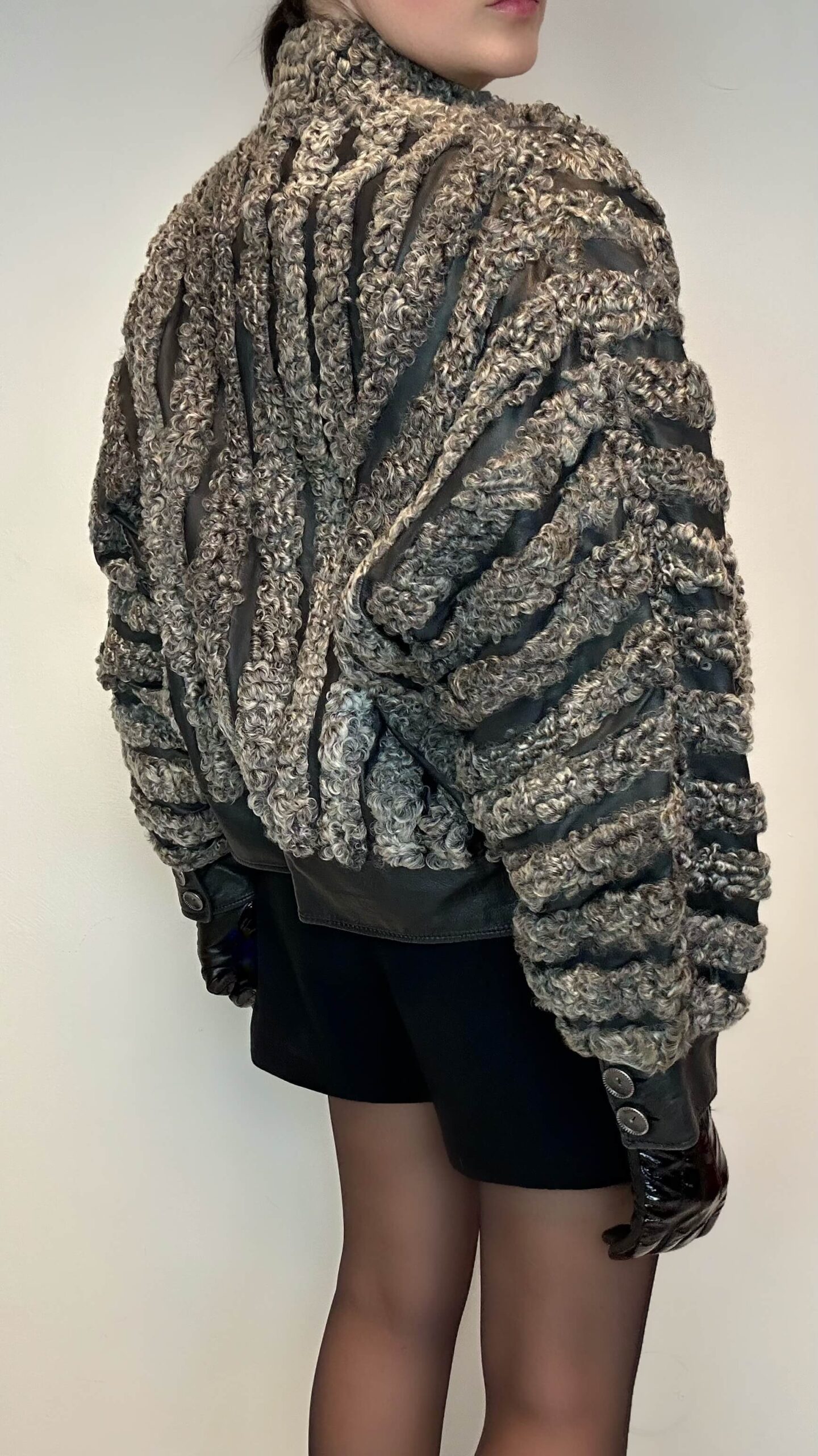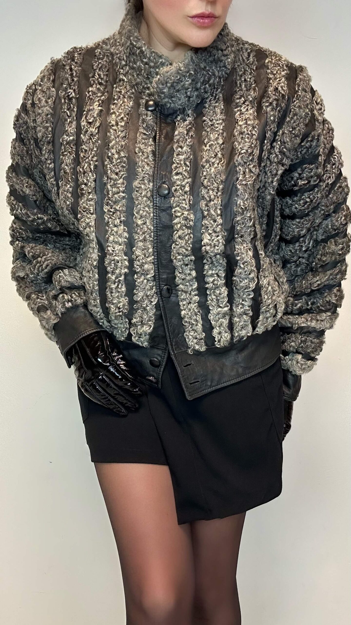 Striped baggy leather jacket with persian fur