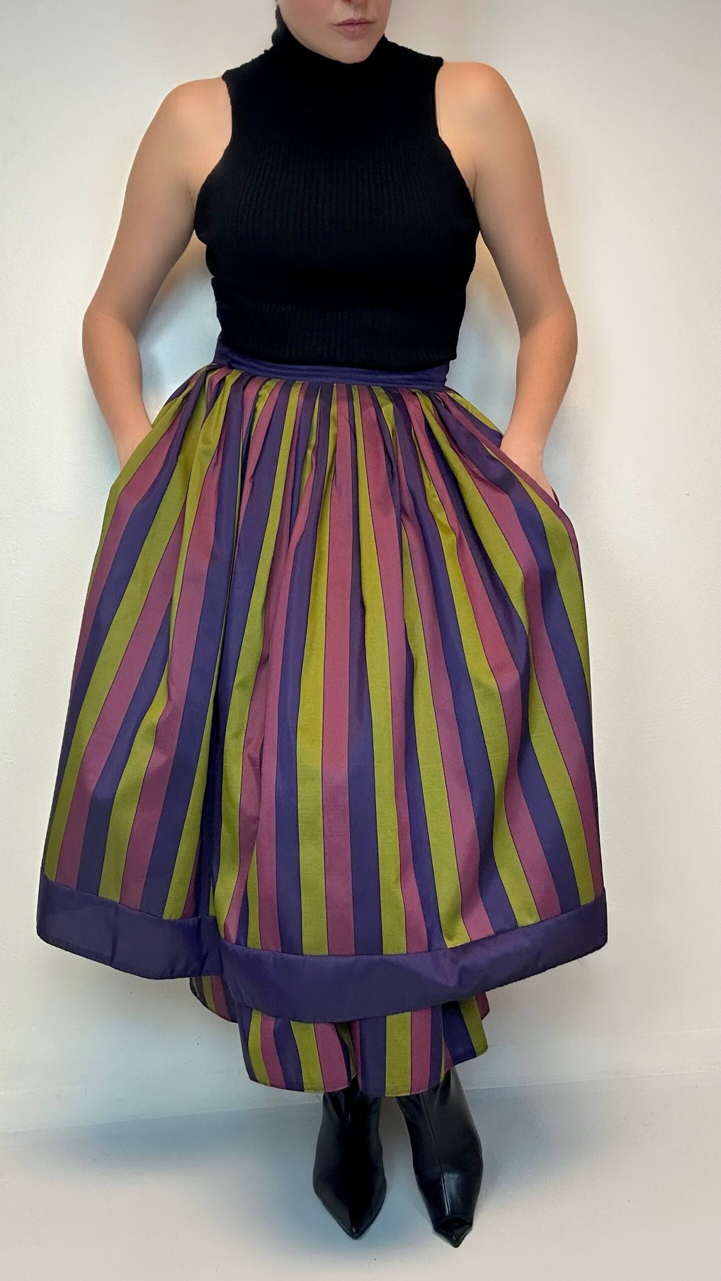 Striped baloon double layered skirt1 in stock 78$ Striped baloon double layered skirt. Material: Polyester Fit: XS 67cm Waist 89cm Length 1 in stock Striped baloon double layered skirt quantity Add to cart Categories: All, Bottoms