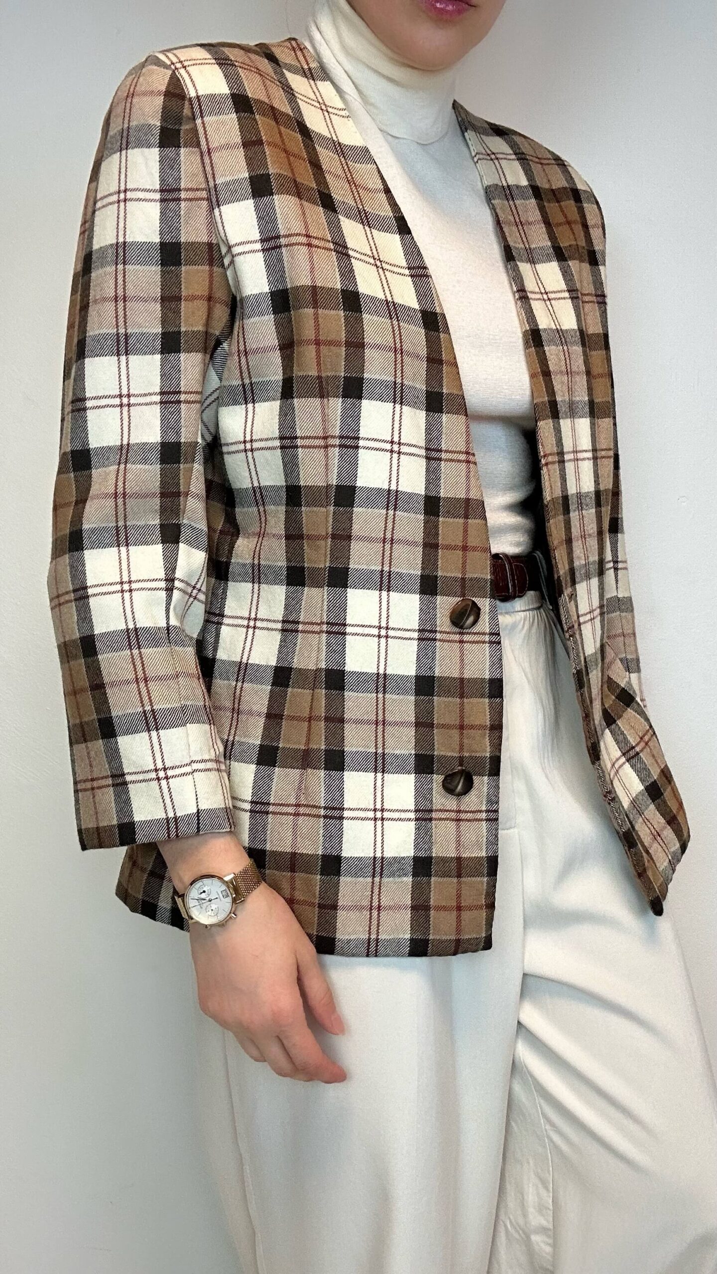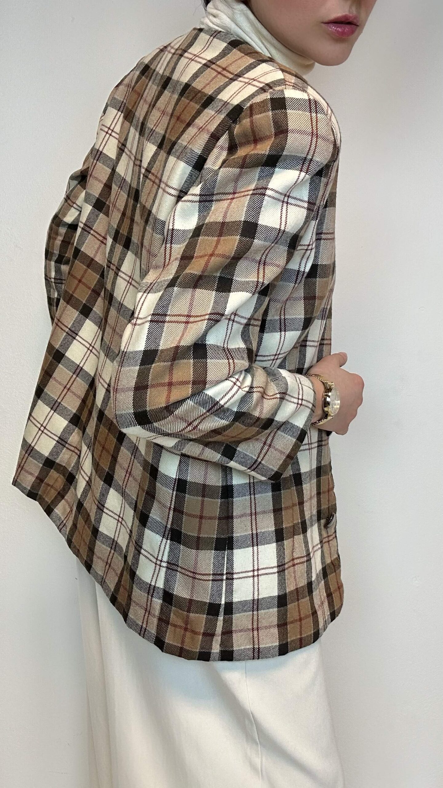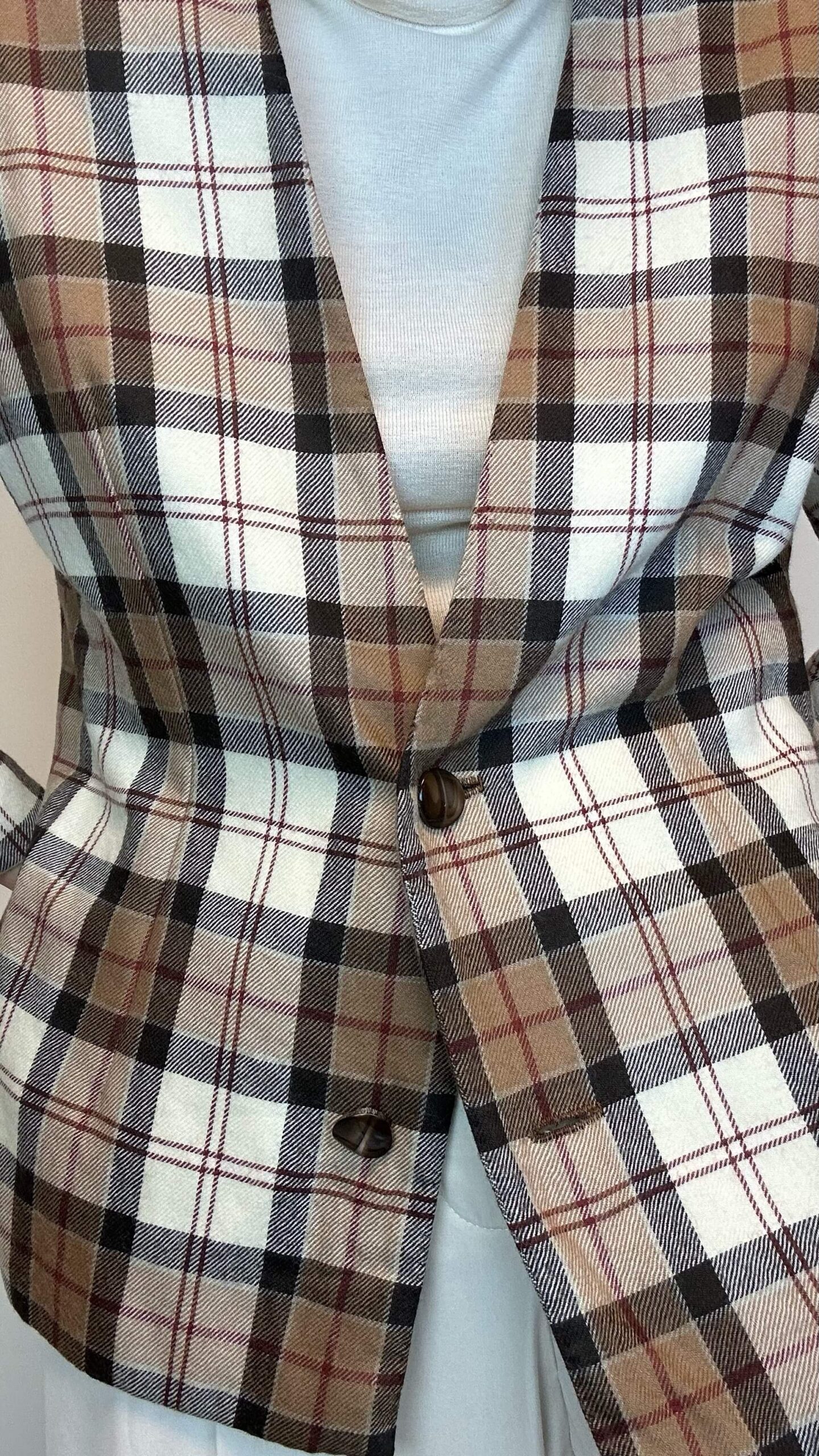 Tartan woolen jacket with a deep v-neck