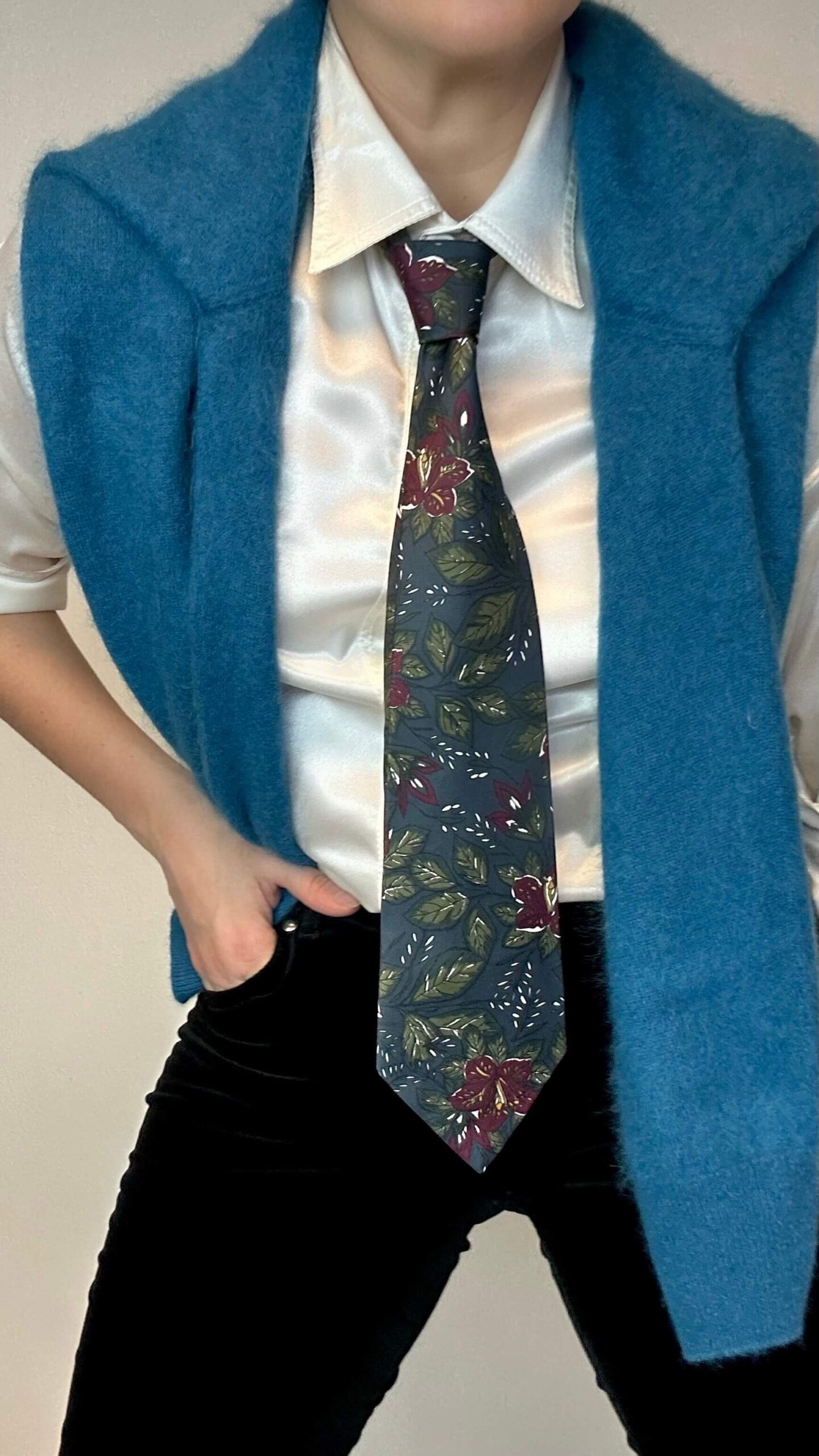 Tie with painted flowers print1 in stock 45$ Tie with painted flowers print. Material: 50% Viscose 50% Polyester 1 in stock Tie with painted flowers print quantity Add to cart Categories: Accessories, All, Subscribers