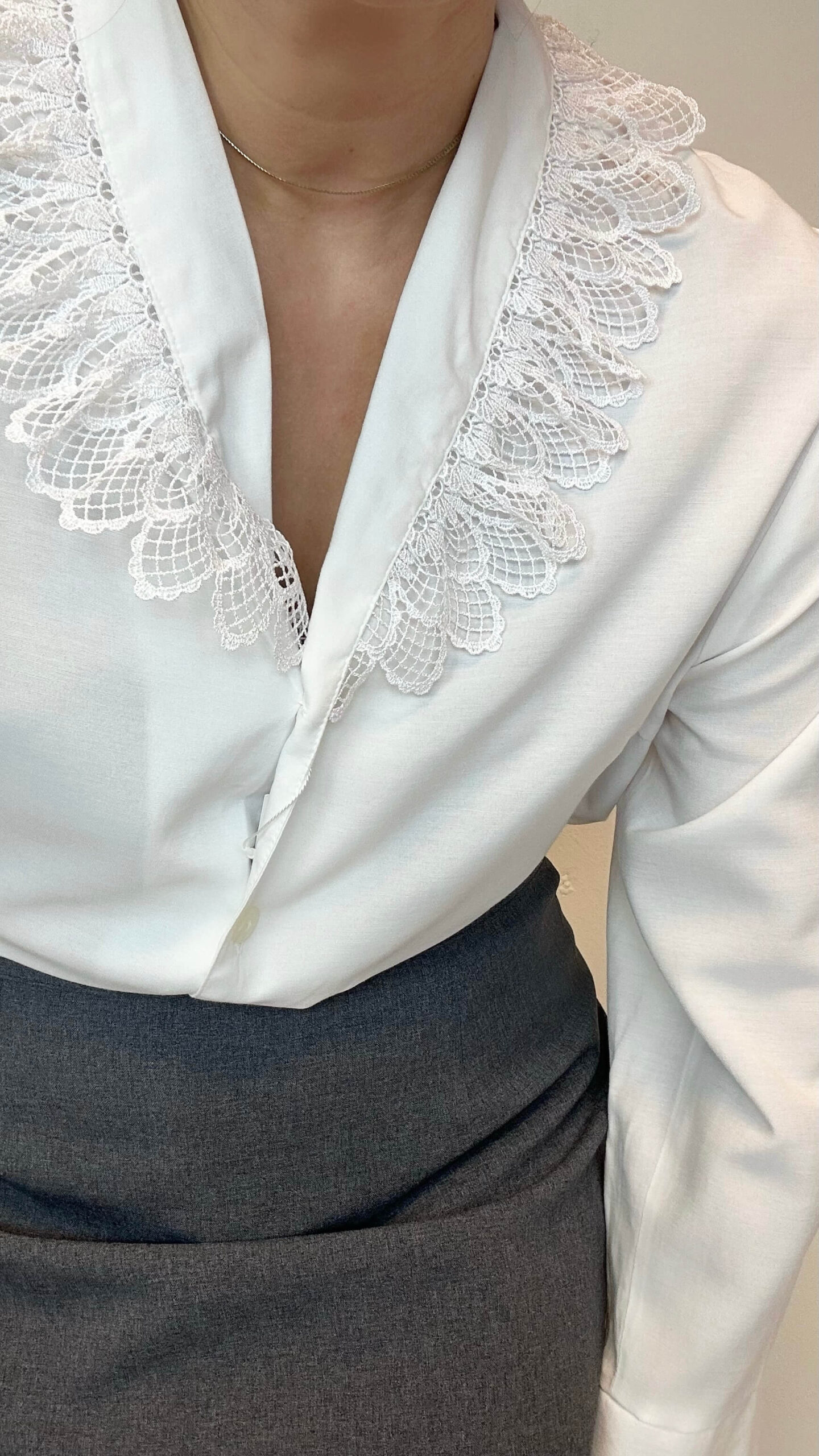 V-neck long sleeve blouse with a ruffle collar
