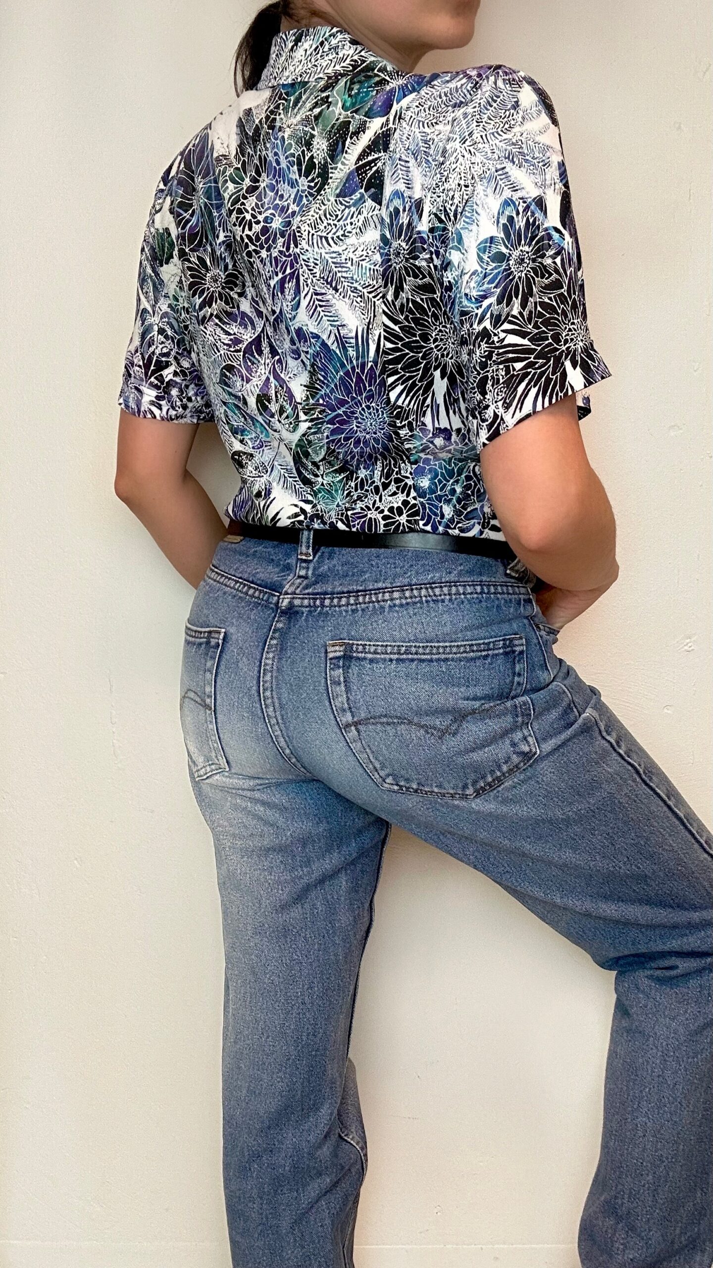 Viscose blouse with ink painting pattern1 in stock 64$ Viscose blouse with ink painting pattern. Material: 100% Viscose Fit: S/M 41cm Shoulder to shoulder 98cm Chest 64cm Length 1 in stock Viscose blouse with ink painting pattern quantity Add to cart Categories: All, Blouses