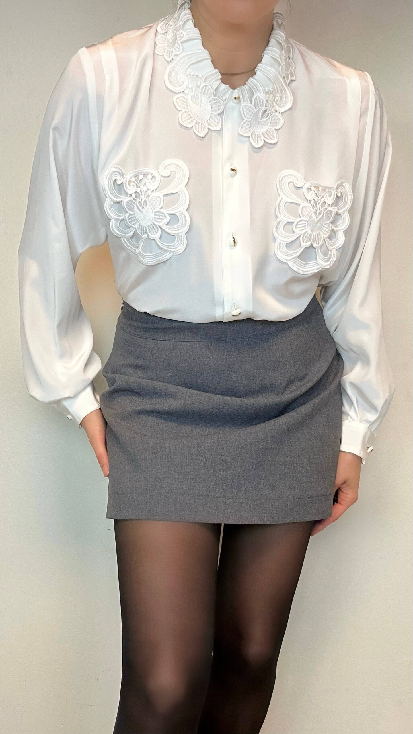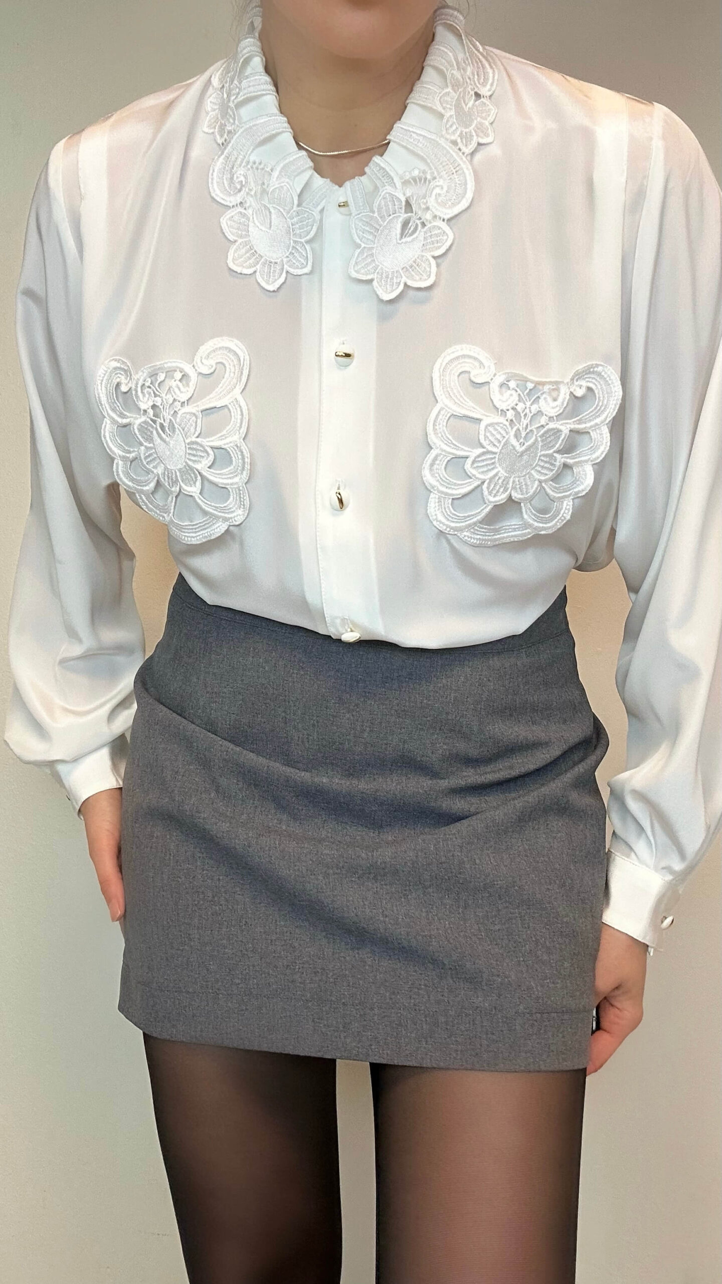 White blouse with a flower designSOLD 76$SOLD Categories: All, Blouses Description Description White blouse with a flower design. Material: Polyester Fit: L/XL/XXL 41cm Shoulder to shoulder 120cm Chest 61cm Sleeve (from the shoulder) 63cm Length