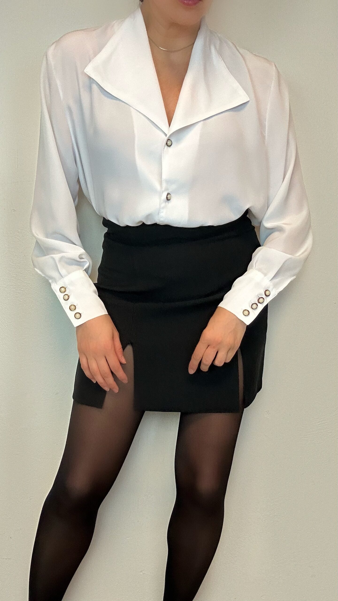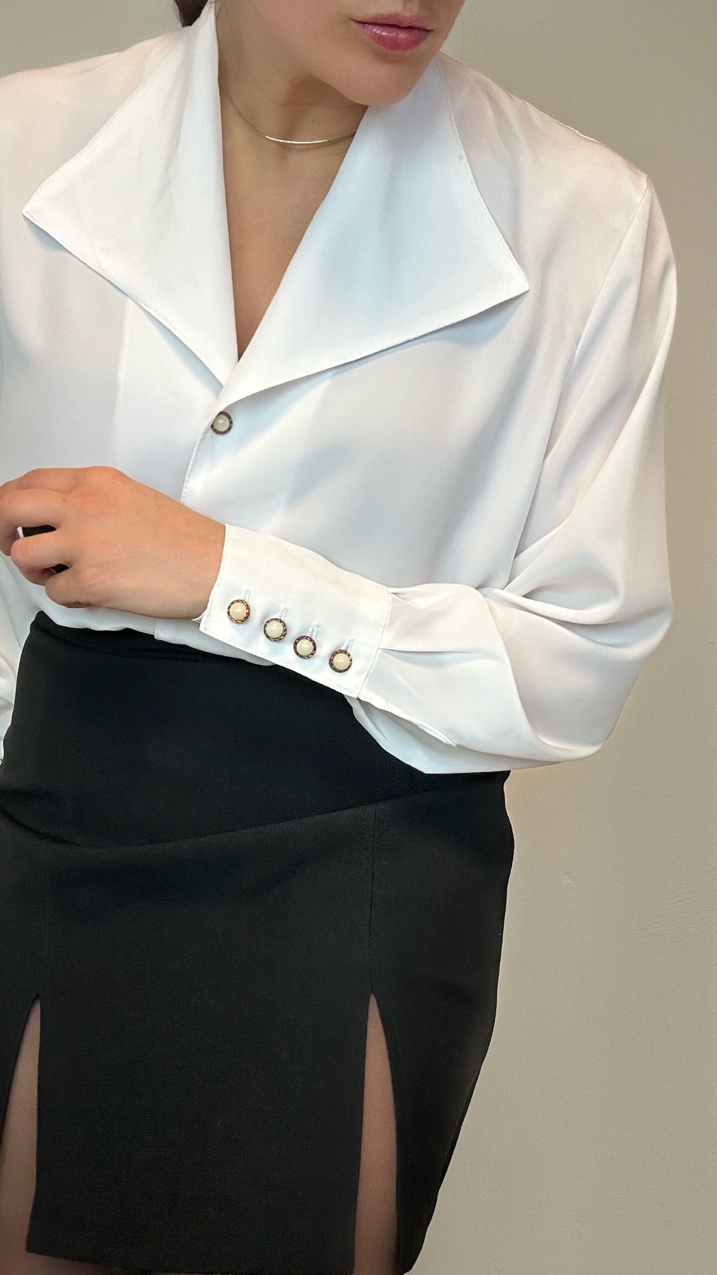 Italian white blouse with cuff sleeves and a big collar1 in stock 70$ Italian white blouse with cuff sleeves and a big collar. Material: Polyester Fit: XL/XXL 44cm Shoulder to shoulder 118cm Chest 61cm Sleeve (from the shoulder) 72cm Length 1 in stock Italian white blouse with cuff sleeves and a big collar quantity Add to cart Categories: All, Blouses