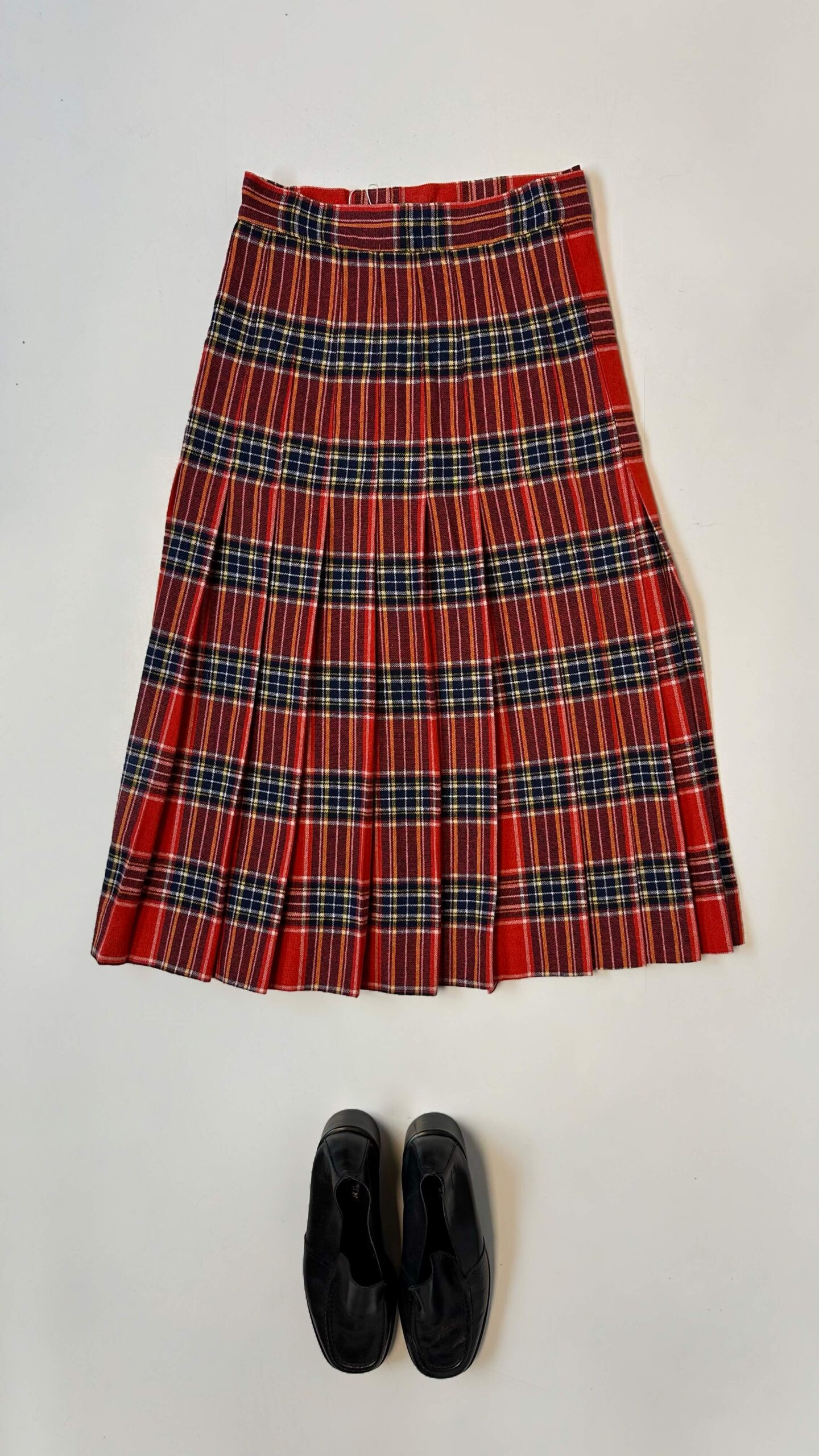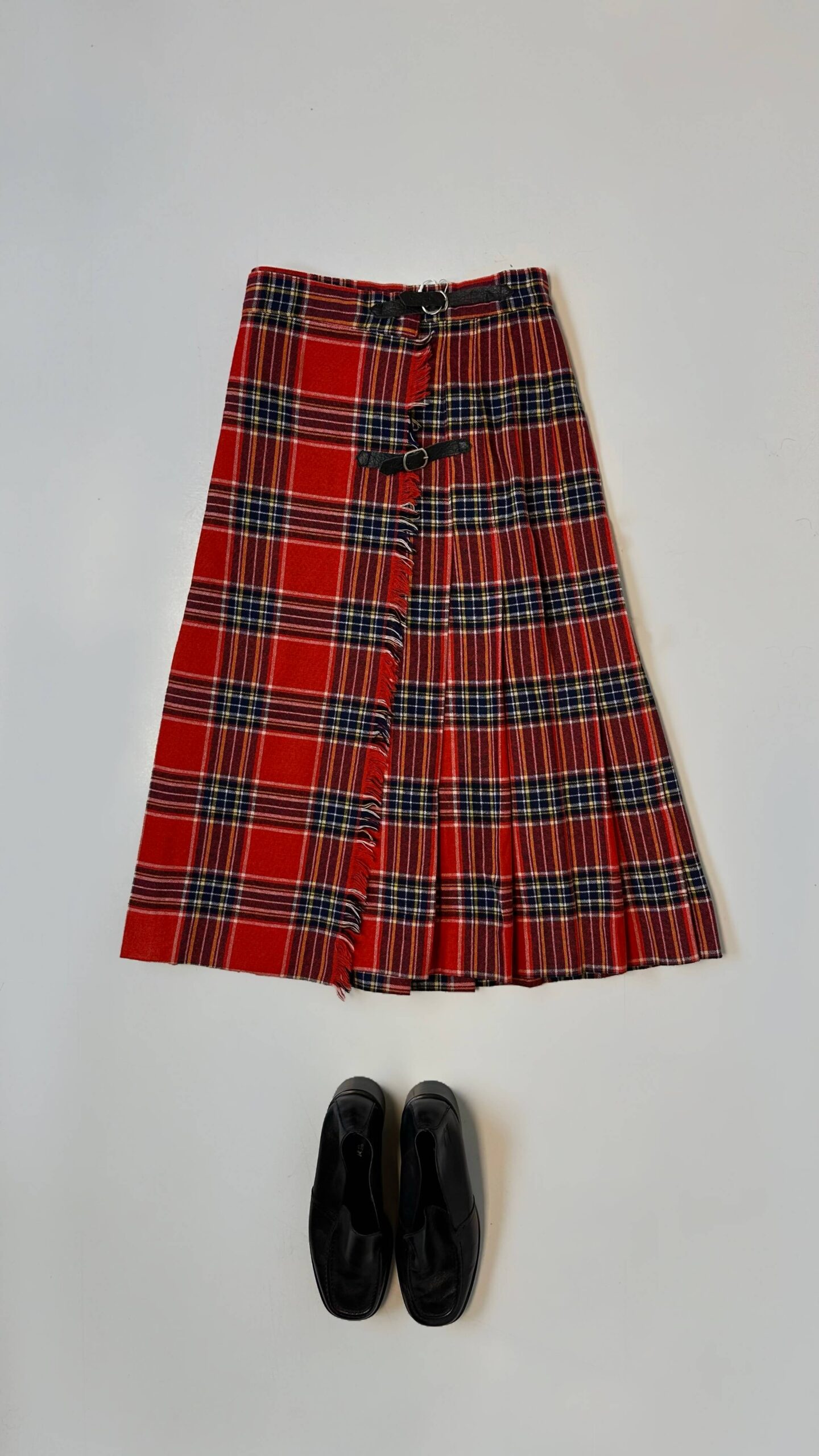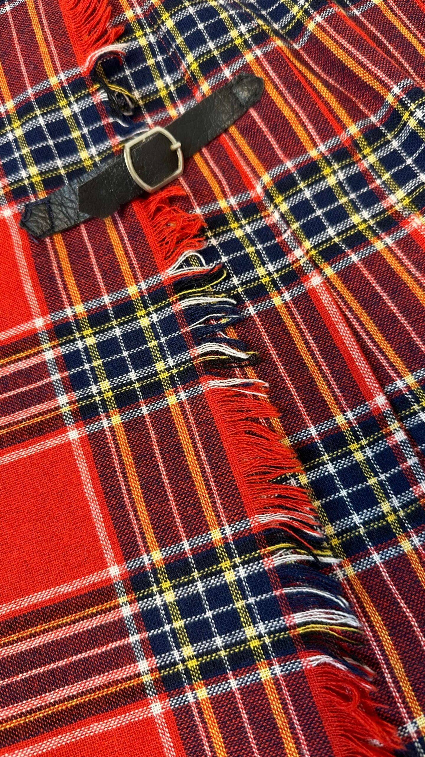 Woolen red tartan kilt skirt1 in stock 118$ Woolen red tartan kilt skirt Material: 100% Wool Fit: XS 64cm Waist 82cm Hips 72cm Length 1 in stock Woolen red tartan kilt skirt quantity Add to cart Categories: All, Bottoms
