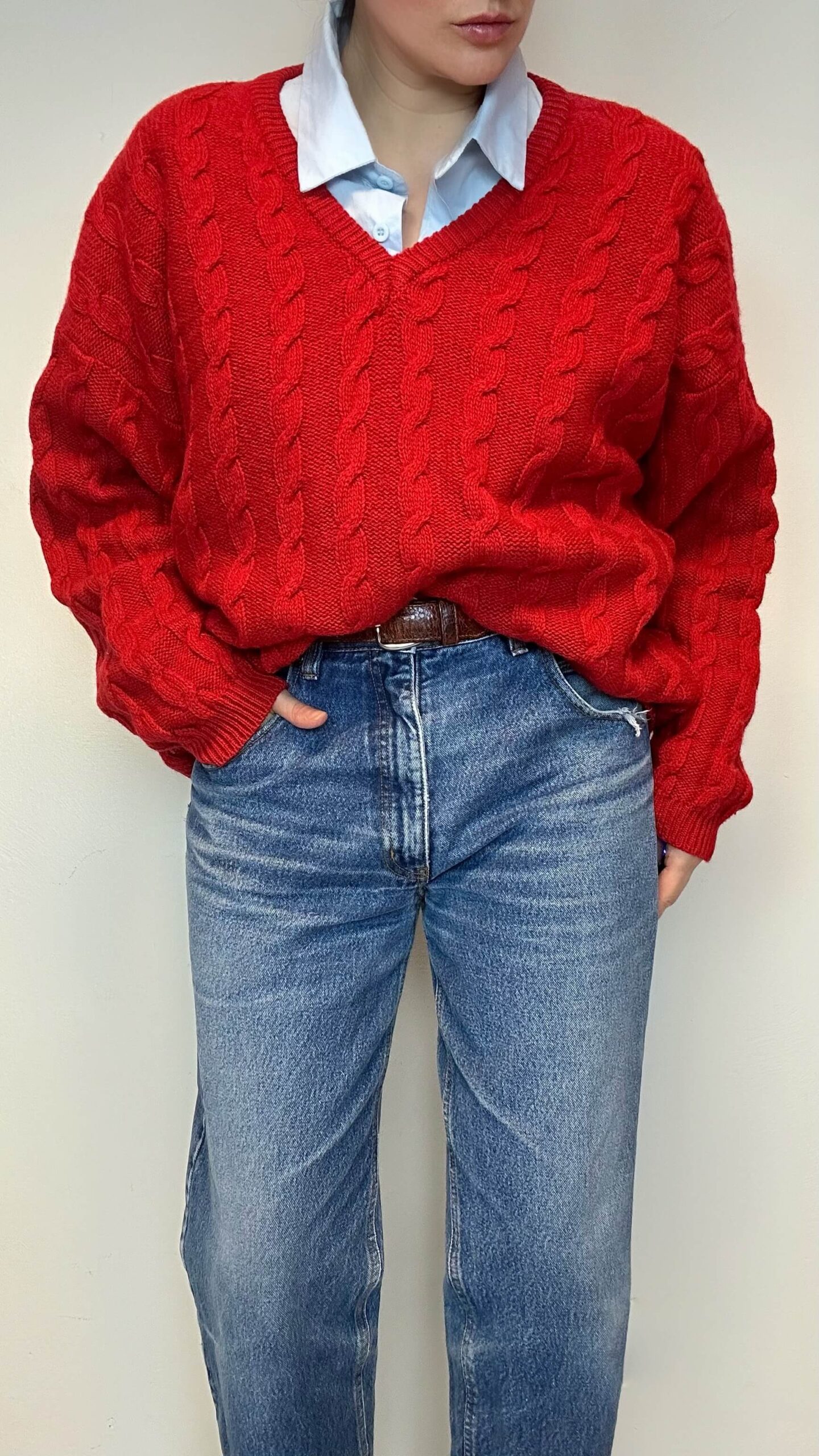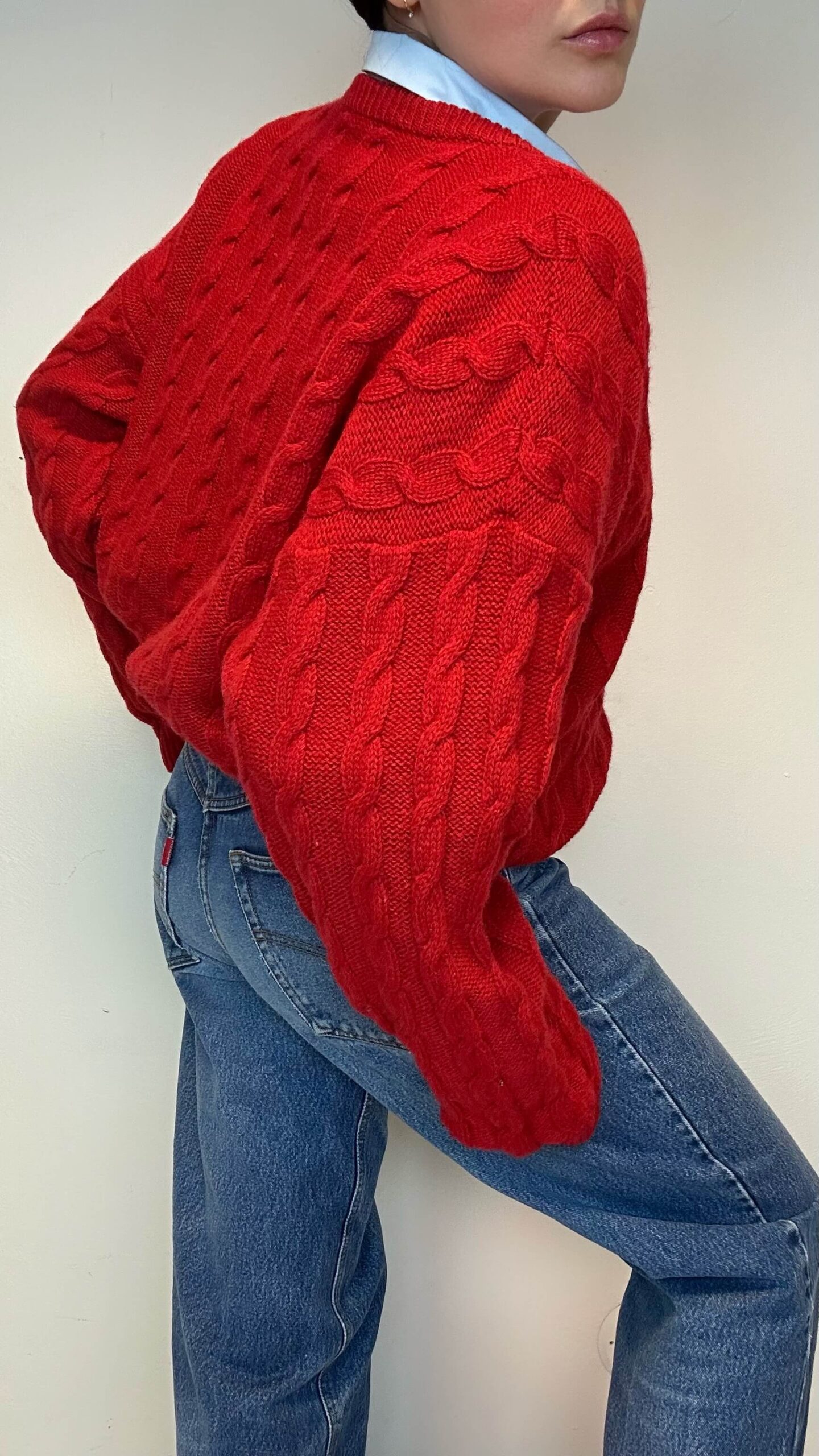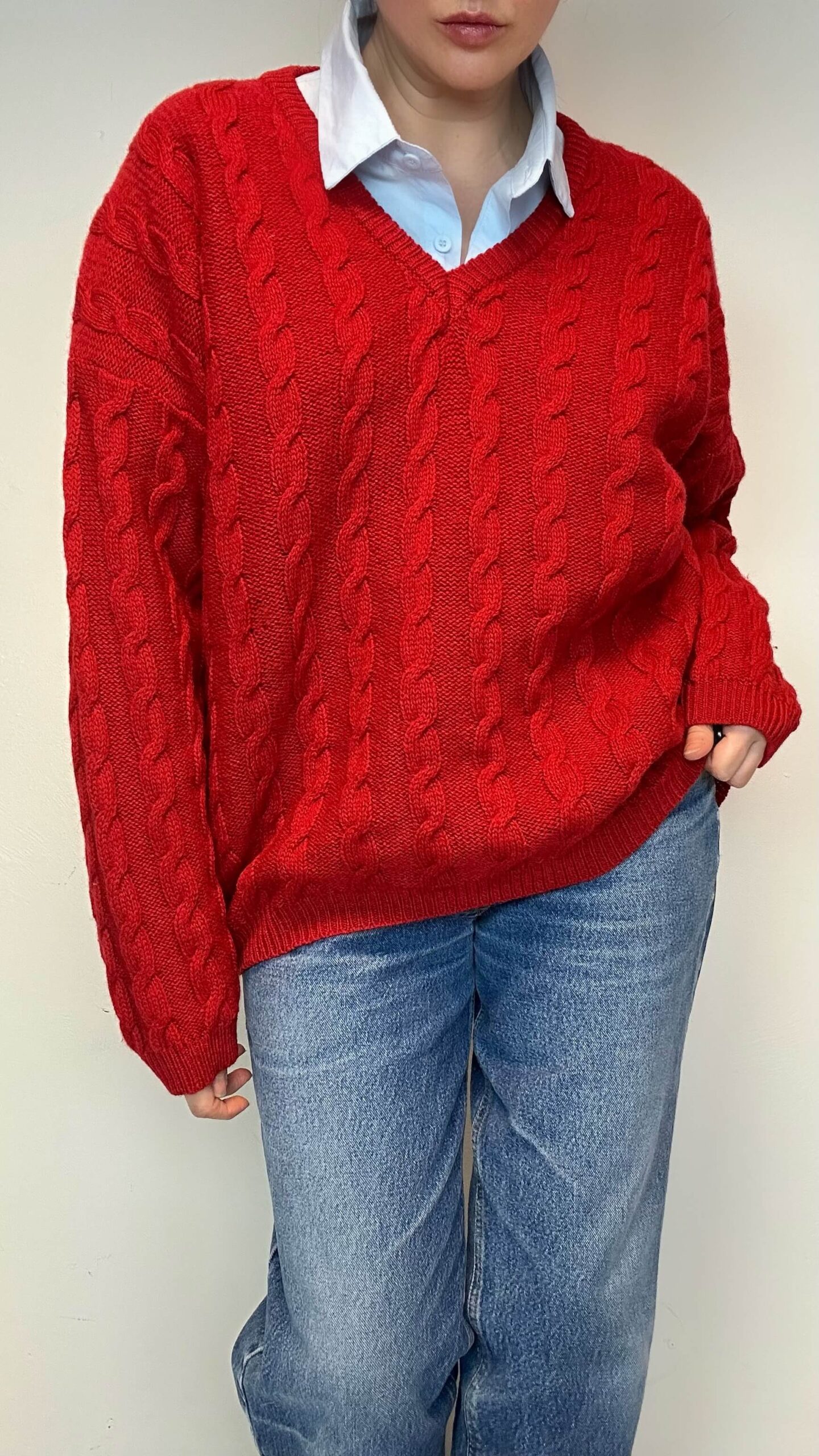 Woolen red timeless unisex cable knit sweater